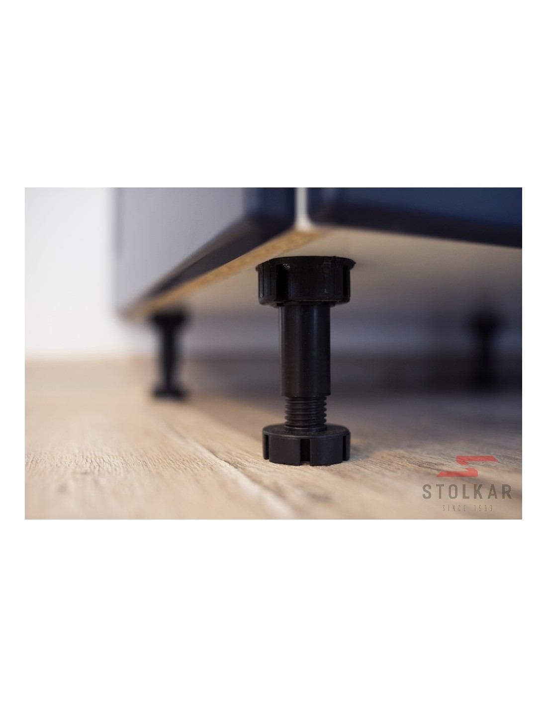 Regulowana nóżka do szafek kuchennychWykonana jest z czarnego PCV o wysokości 100 mm.Regulacja w zakresie 90-130mm