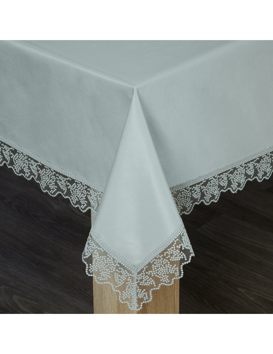 Ekskluzywny obrus z koronką z kolekcji reina szerokość: 150 cm, długość: 300 cm, kolor: srebrny, Gramatura: 160 GSM, Skład: 50% bawełna, 50% poliester
