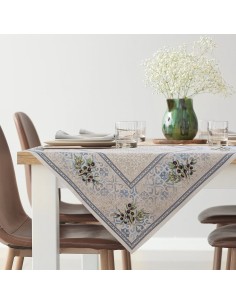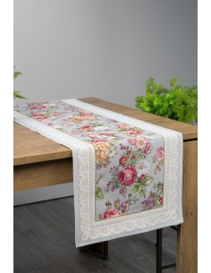 Nakładka welwetowa z kwiatowym nadrukiem szerokość: 33 cm, długość: 140 cm, kolor: granatowy, Gramatura: 200 GSM, Skład: 100% poliester