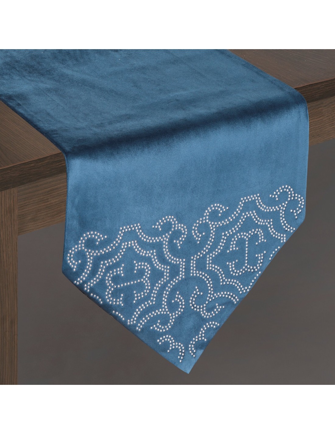 Obrus welwetowy zdobiony dżetami szerokość: 32 cm, długość: 140 cm, kolor: granatowy, Skład: 100% poliester