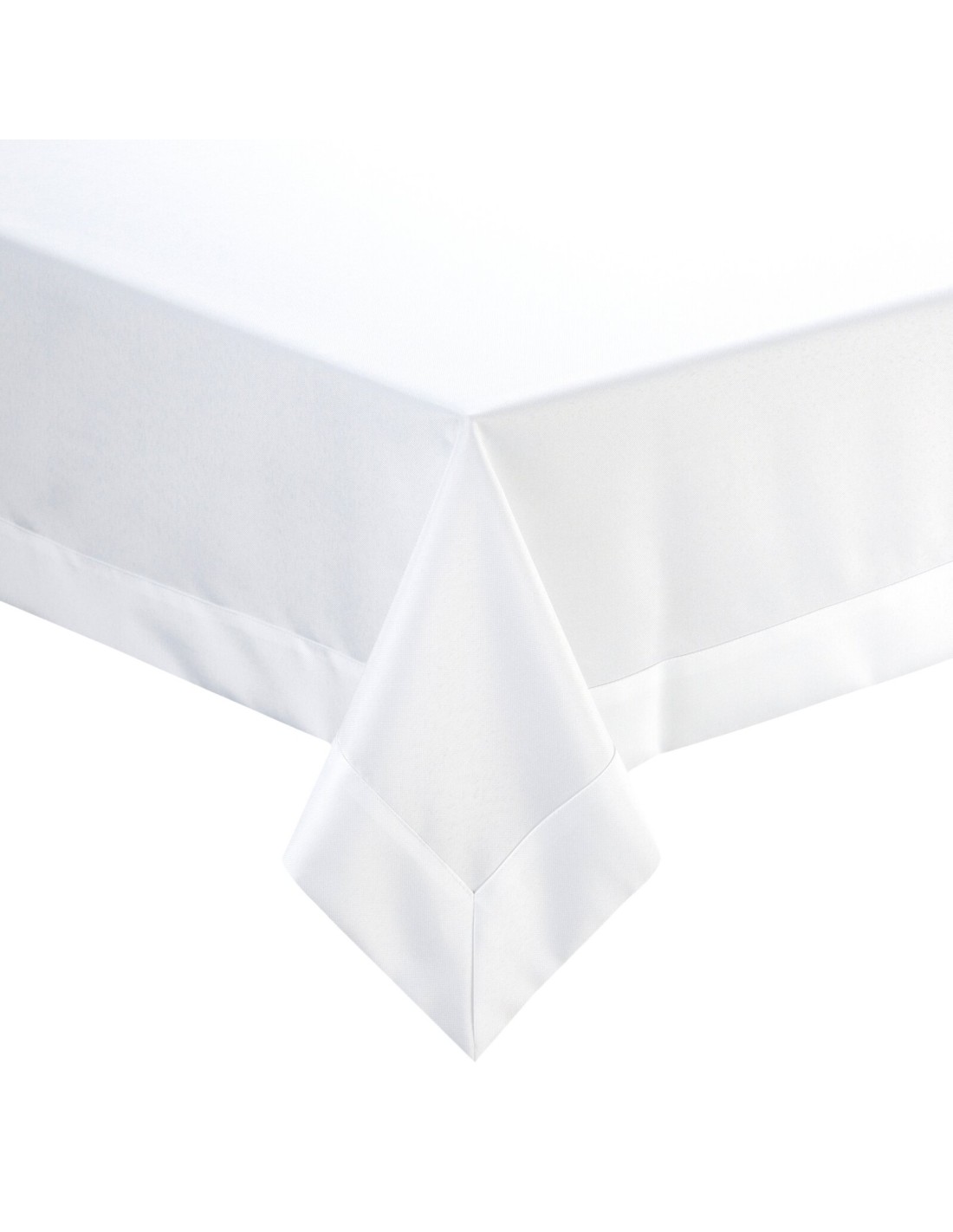 Obrus z delikatną białą lamówką szerokość: 140 cm, długość: 220 cm, kolor: biały, Gramatura: 190 GSM, Skład: 100% poliester