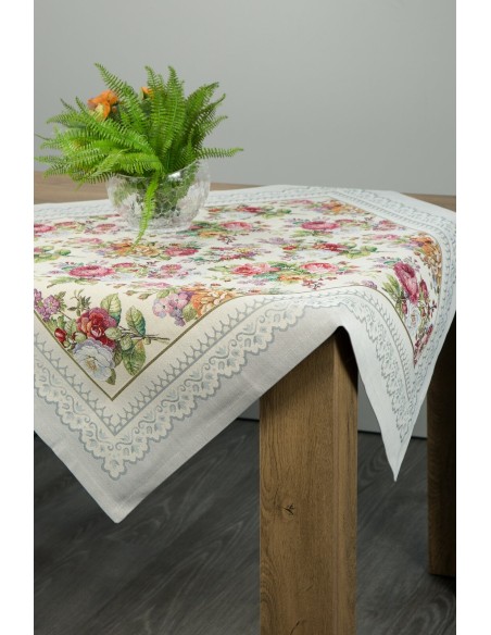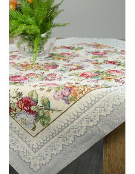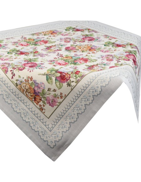 Obrus gobelinowy szerokość: 100 cm, długość: 100 cm, kolor: jasnoszary, Gramatura: 410 GSM, Skład: 63% poliester, 34% bawełna, 3% akryl