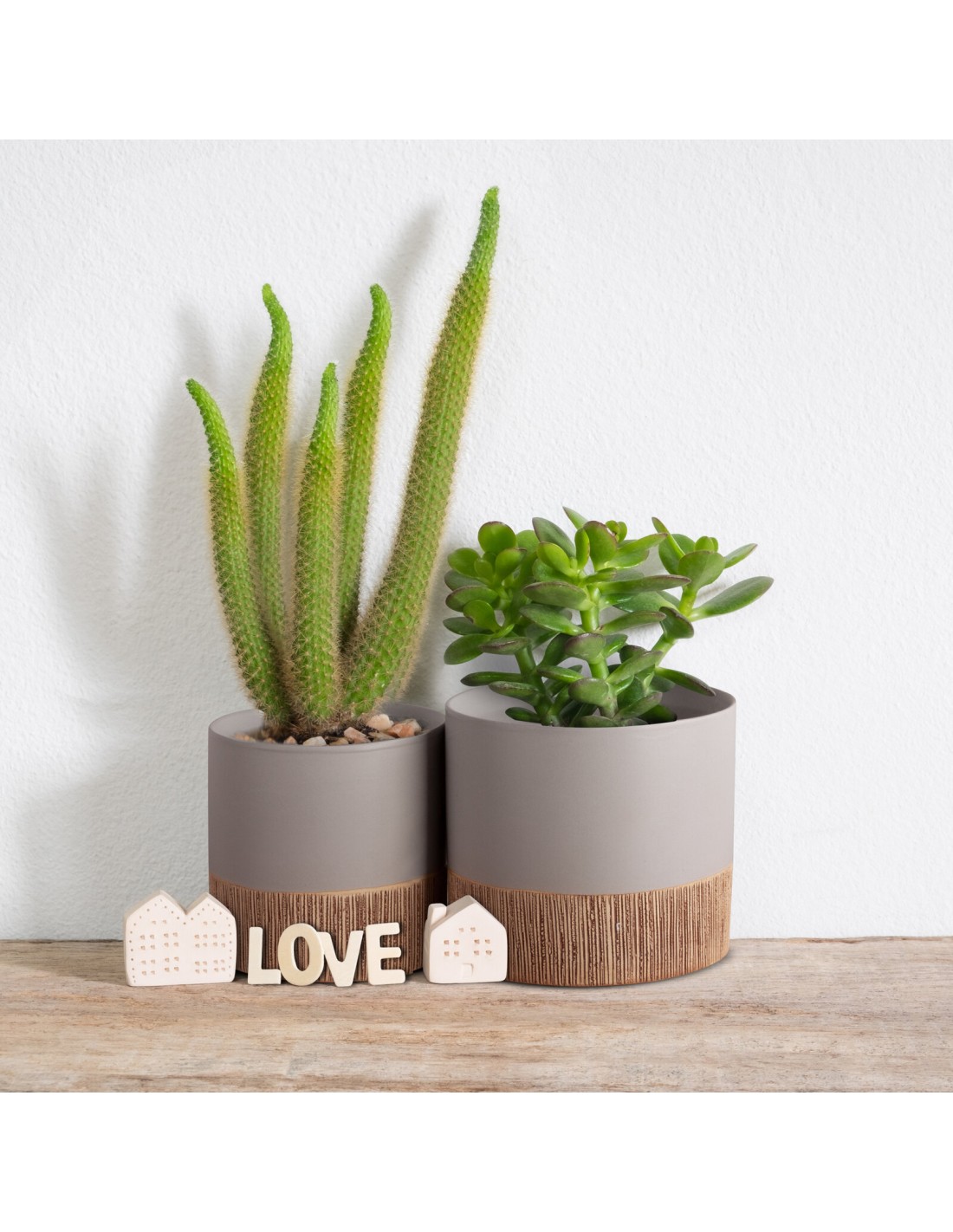 Doniczka dekoracyjna szerokość: fi 18 cm, długość: 15 cm, kolor: popielaty, Skład: glinka ceramiczna
