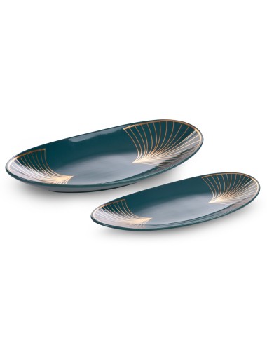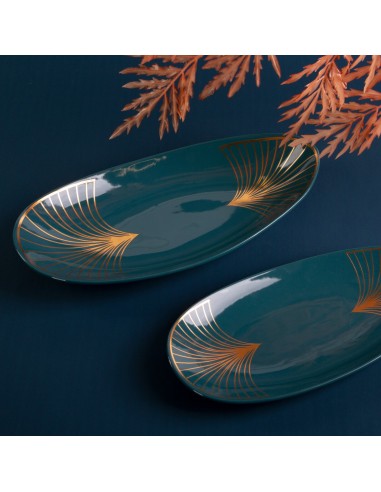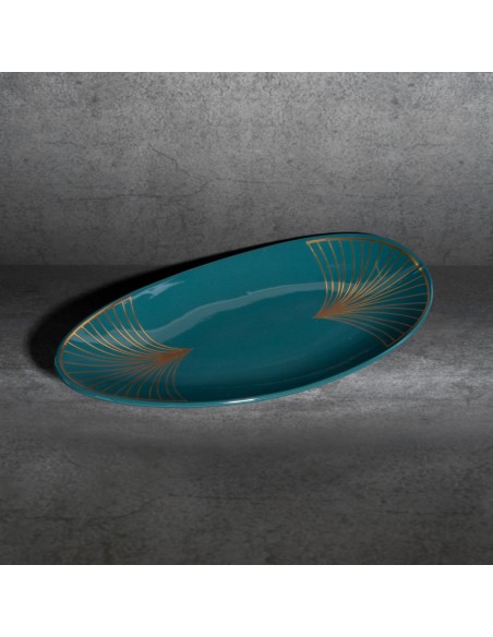 Patera dekoracyjna szerokość: 33 cm, długość: 16 cm, kolor: turkusowy, Skład: glinka ceramiczna
