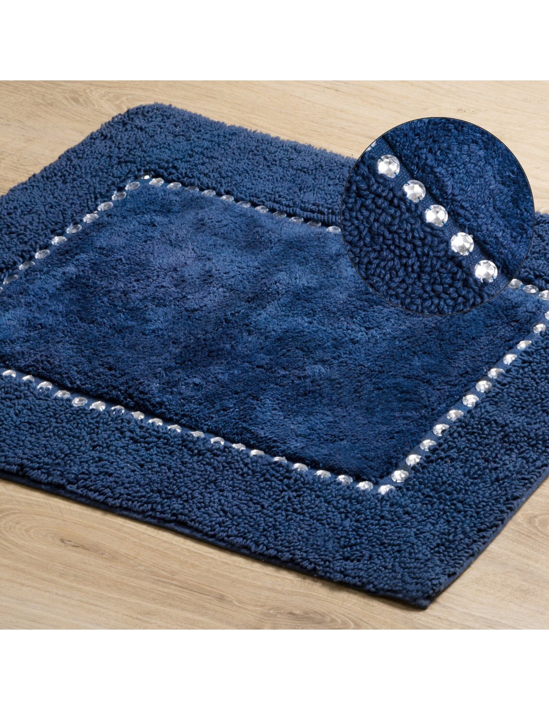Miękki i efektowny dywanik zdobiony kryształkami szerokość: 50 cm, długość: 70 cm, kolor: granatowy, Gramatura: 1800 GSM, Skład: 100% bawełna