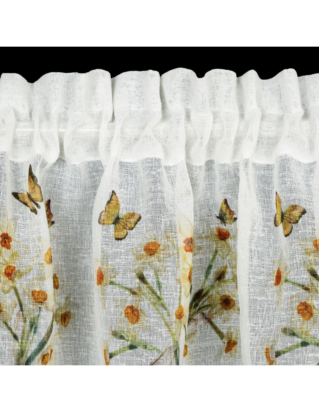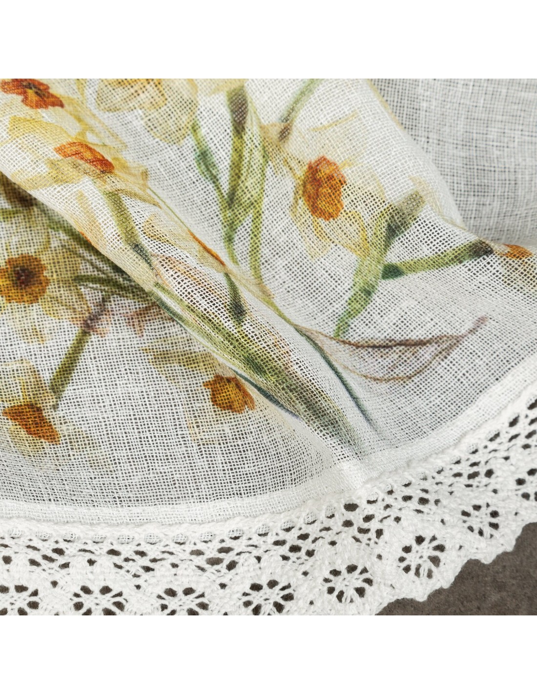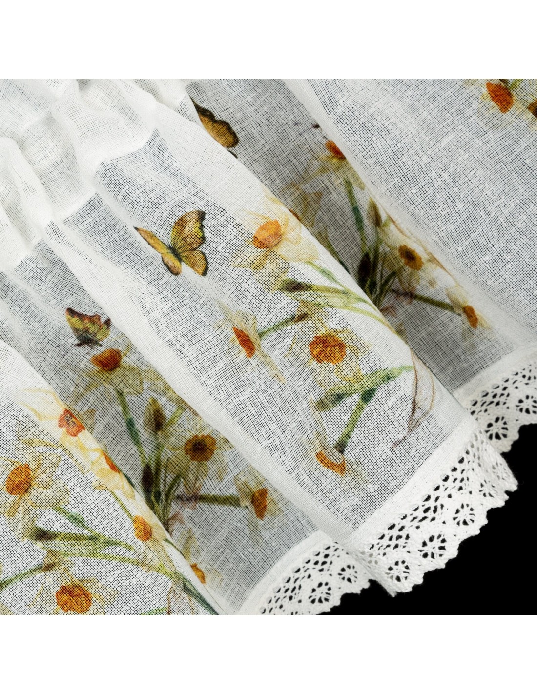 Zazdrostka z nadrukiem zdobiona koronką szerokość: 150 cm, długość: 60 cm, kolor: biały, Gramatura: 110 GSM, Skład: 100% poliester