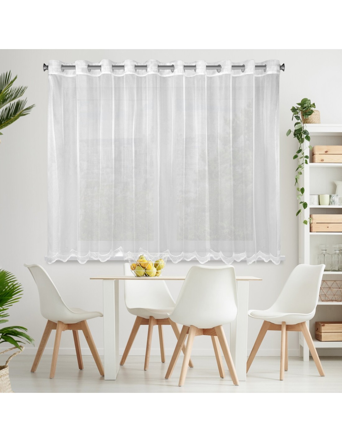 Firana gotowa, jednokolorowa zdobiona haftem szerokość: 350 cm, długość: 145 cm, kolor: biały, Gramatura: 70 GSM, Skład: 100% poliester