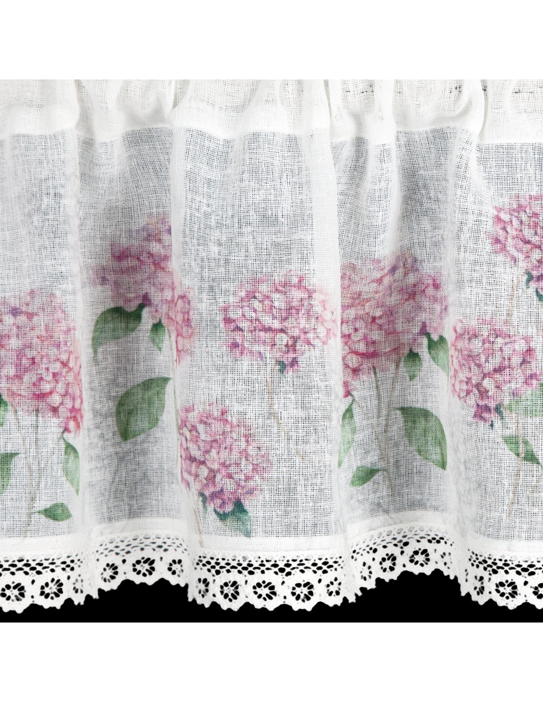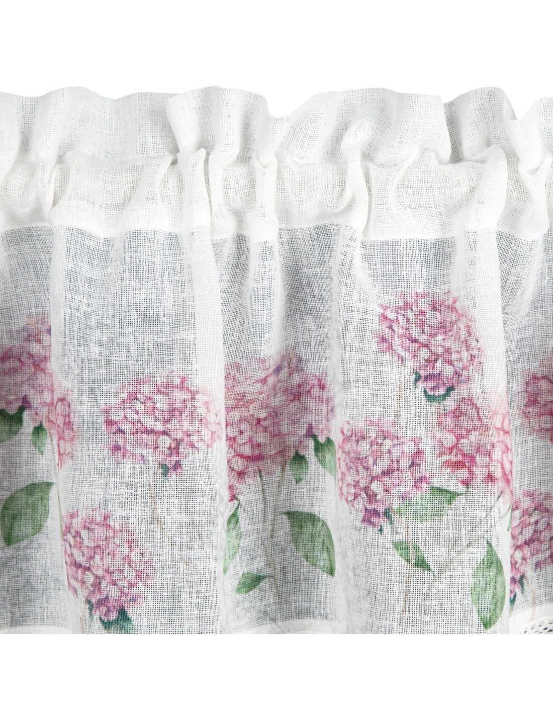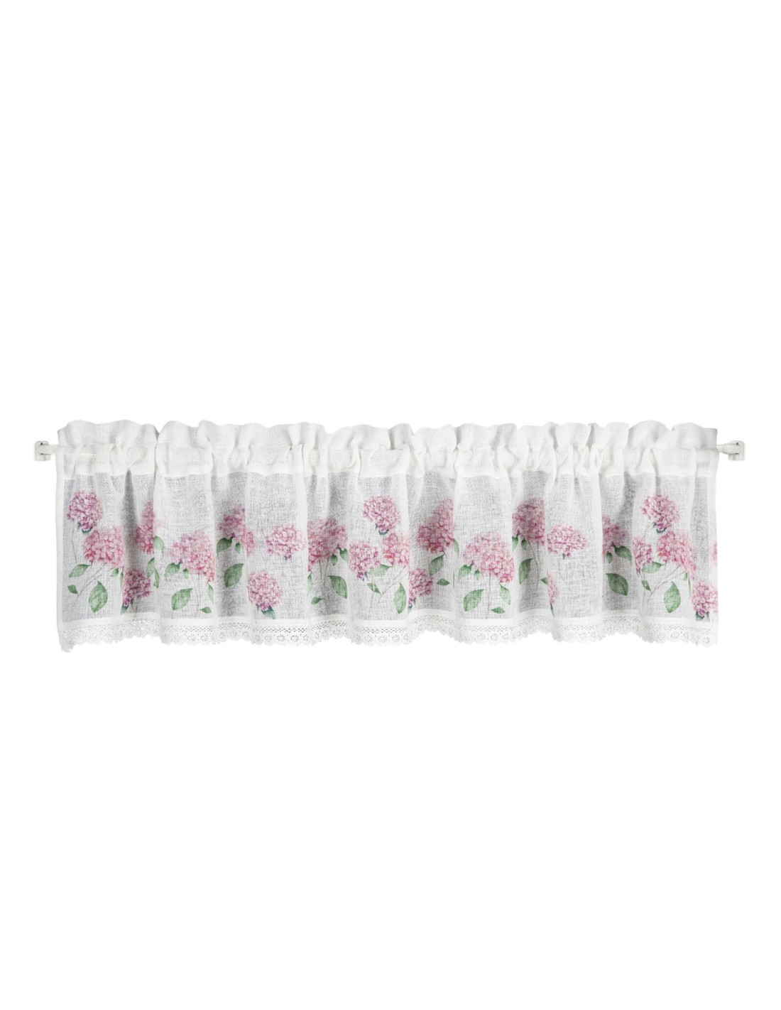 Zazdrostka z nadrukiem zdobiona koronką szerokość: 150 cm, długość: 30 cm, kolor: biały, Gramatura: 110 GSM, Skład: 100% poliester
