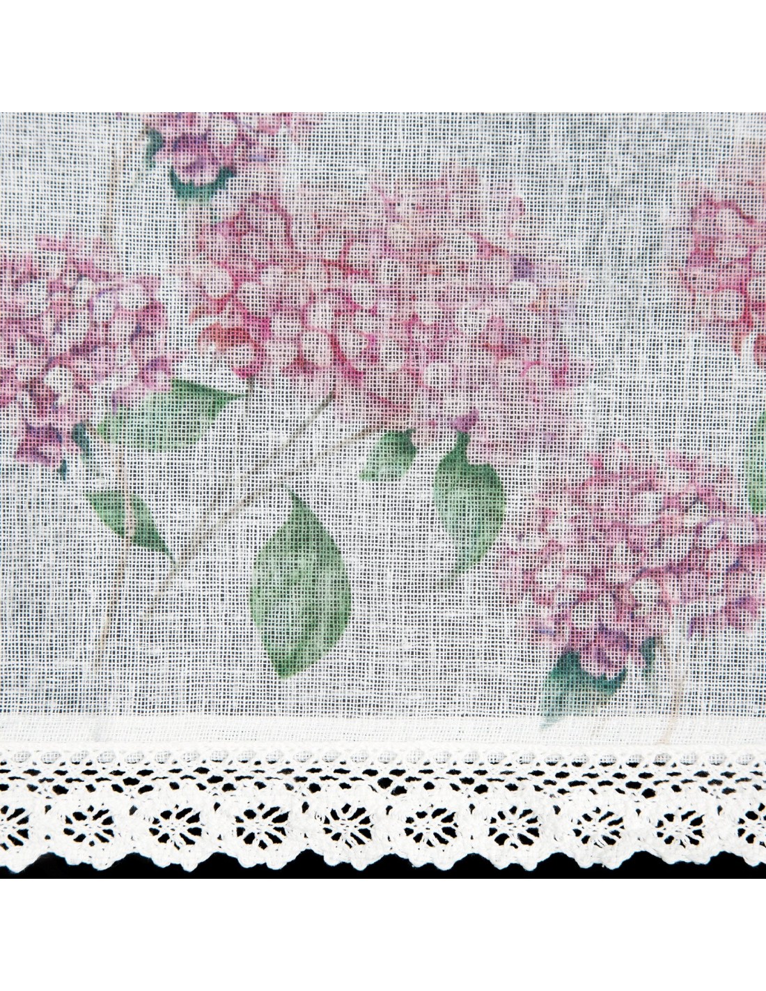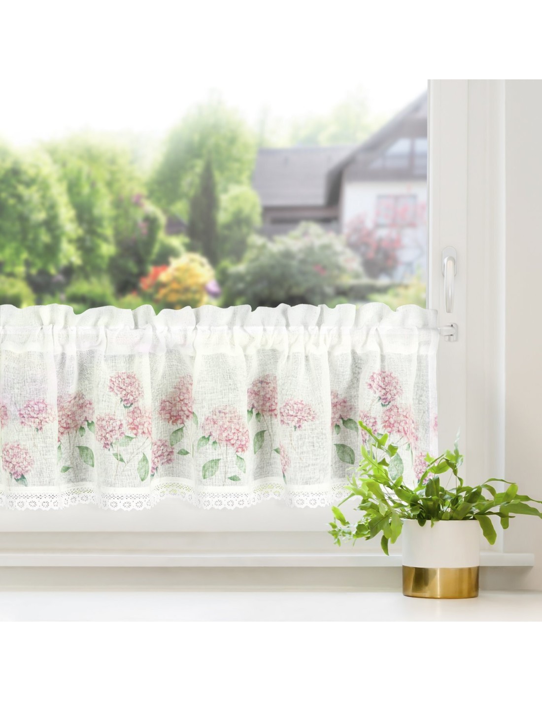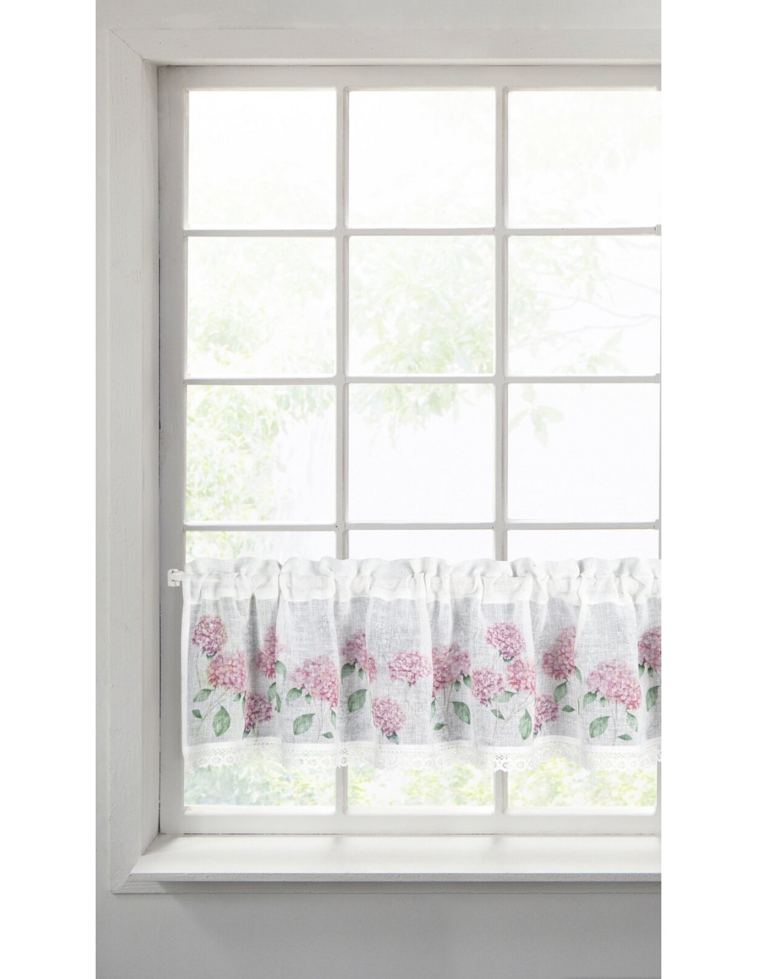Zazdrostka z nadrukiem zdobiona koronką szerokość: 150 cm, długość: 30 cm, kolor: biały, Gramatura: 110 GSM, Skład: 100% poliester