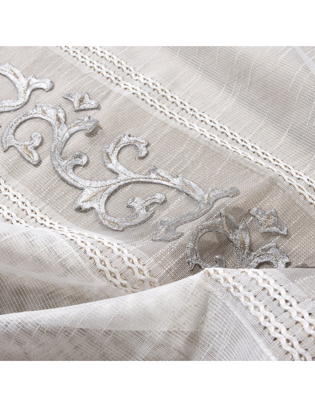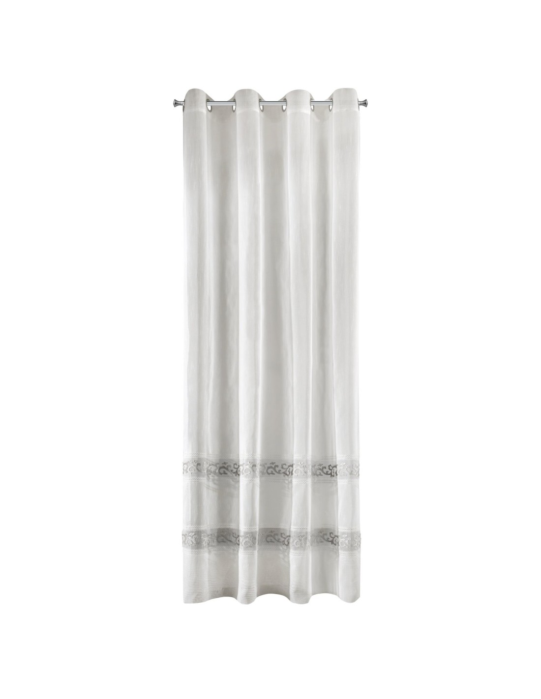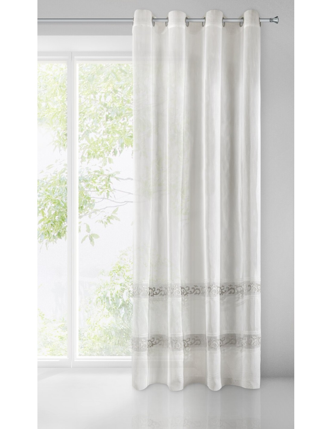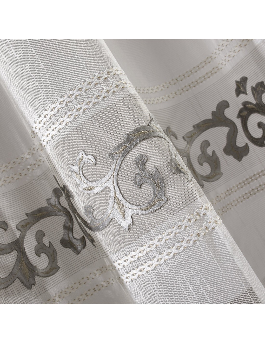 Firana gotowa zdobiona efektownym welwetowym wzorem szerokość: 140 cm, długość: 270 cm, kolor: biały, Gramatura: 70 GSM, Skład: 100% poliester