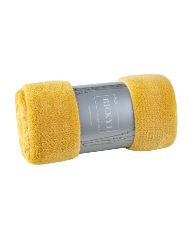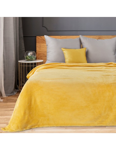 Koc flano bardzo miękki w dotyku szerokość: 150 cm, długość: 200 cm, kolor: musztardowy, Gramatura: 250 GSM GSM, Skład: 100% poliester