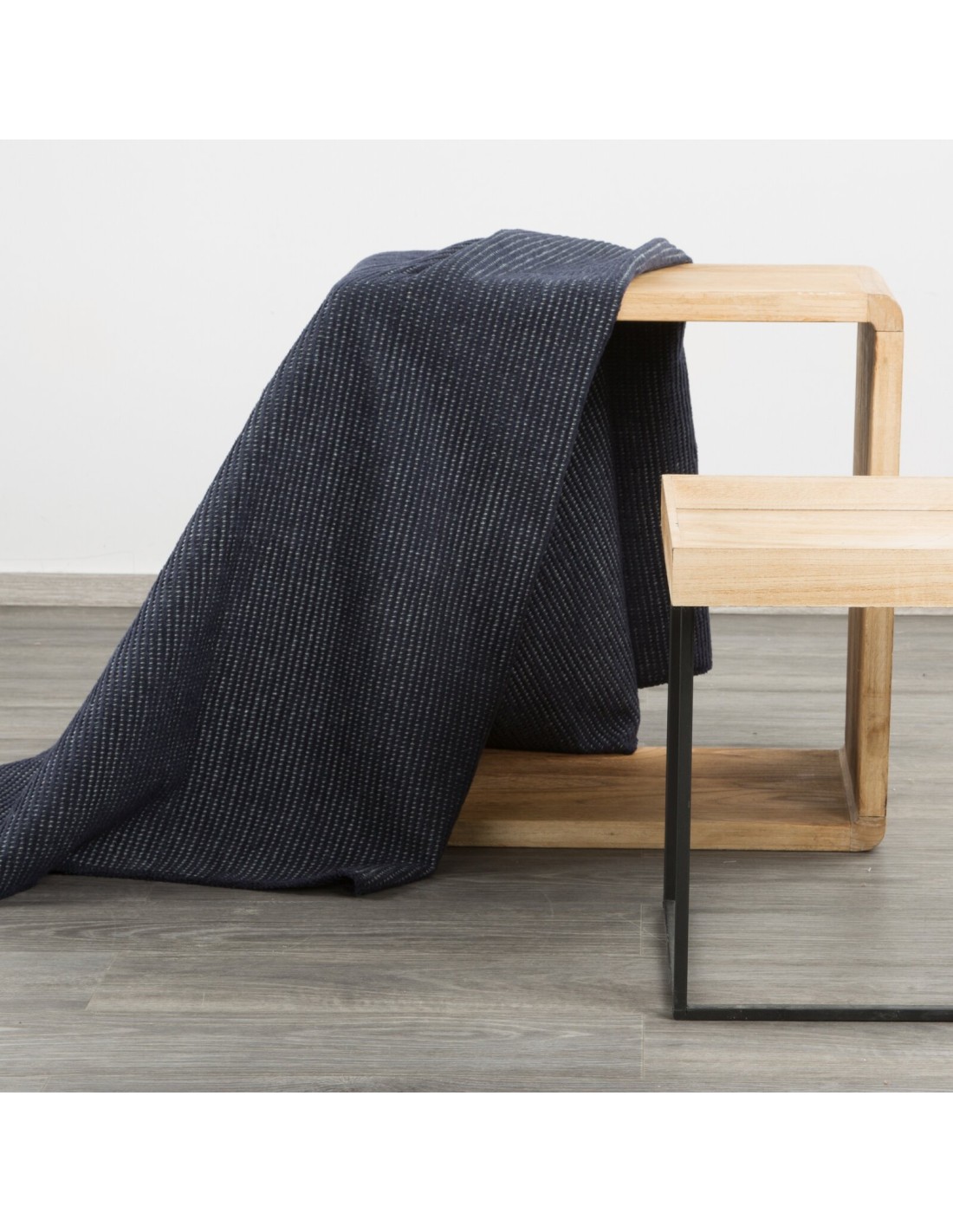 Koc bardzo miękki w dotyku, o strukturze waflowej szerokość: 70 cm, długość: 160 cm, kolor: granatowy, Gramatura: 345 GSM GSM, Skład: 50% bawełna, 30% poliester, 20% akryl