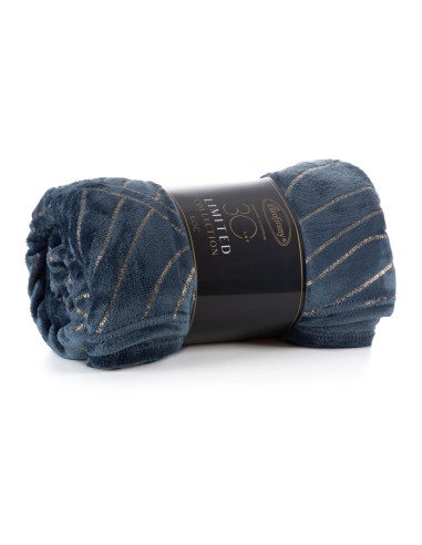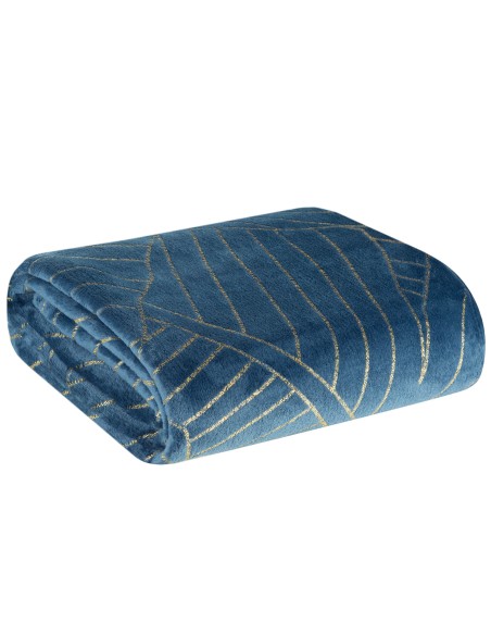 Koc flano bardzo miękki w dotyku z błyszczącym nadrukiem szerokość: 150 cm, długość: 200 cm, kolor: granatowy, Gramatura: 250GSM GSM, Skład: 100% poliester