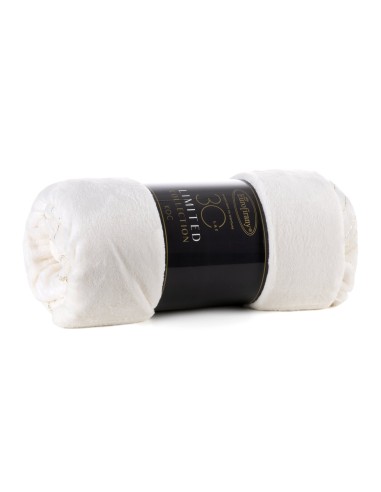 Koc flano bardzo miękki w dotyku z błyszczącym nadrukiem szerokość: 150 cm, długość: 200 cm, kolor: biały, Gramatura: 250GSM GSM, Skład: 100% poliester
