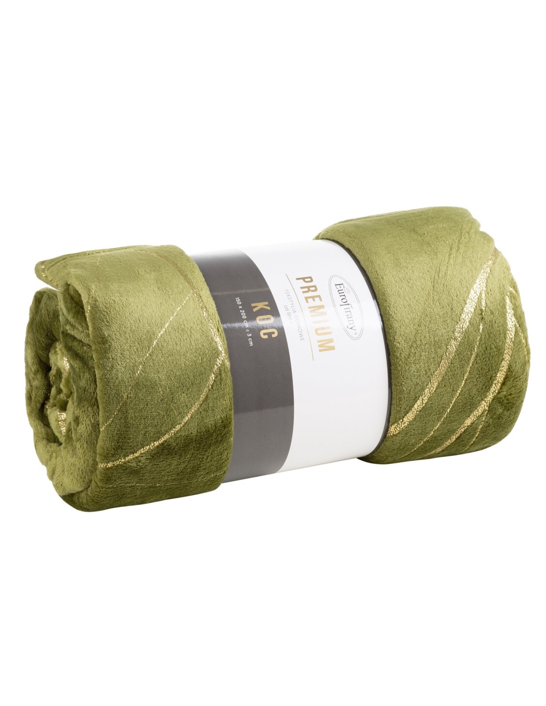 Koc flano bardzo miękki w dotyku z błyszczącym nadrukiem szerokość: 150 cm, długość: 200 cm, kolor: oliwkowy, Gramatura: 250GSM GSM, Skład: 100% poliester