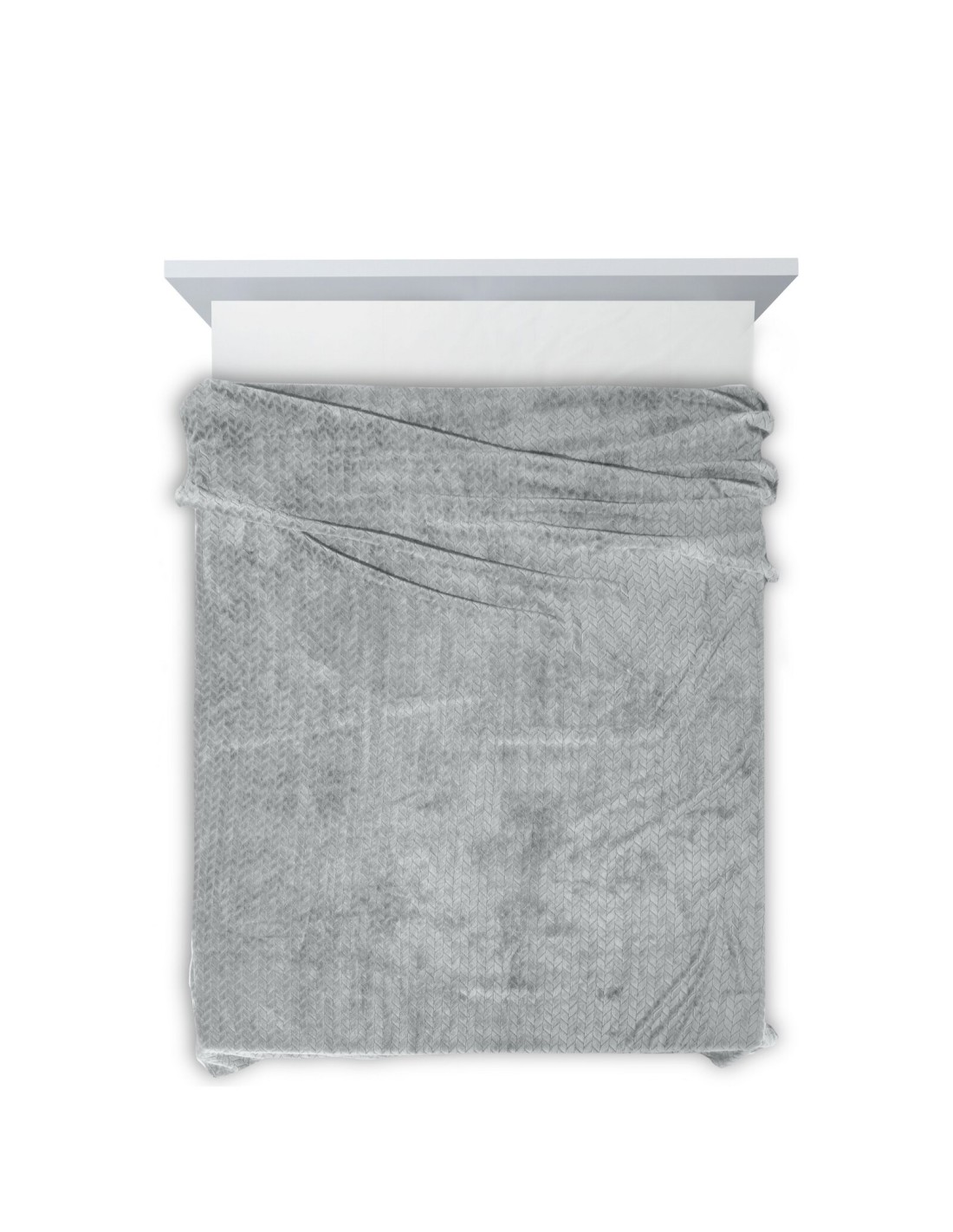 Klasyczny koc z przyjemnego w dotyku włókna w technologii mikroflano. Jednobarwna, puszysta faktura ozdobiona jest minimalistycznym tłoczeniem w formie jodełki. szerokość: 150 cm, długość: 200 cm, kolor: popielaty, Gramatura: 250 GSM, Skład: 100% poliester