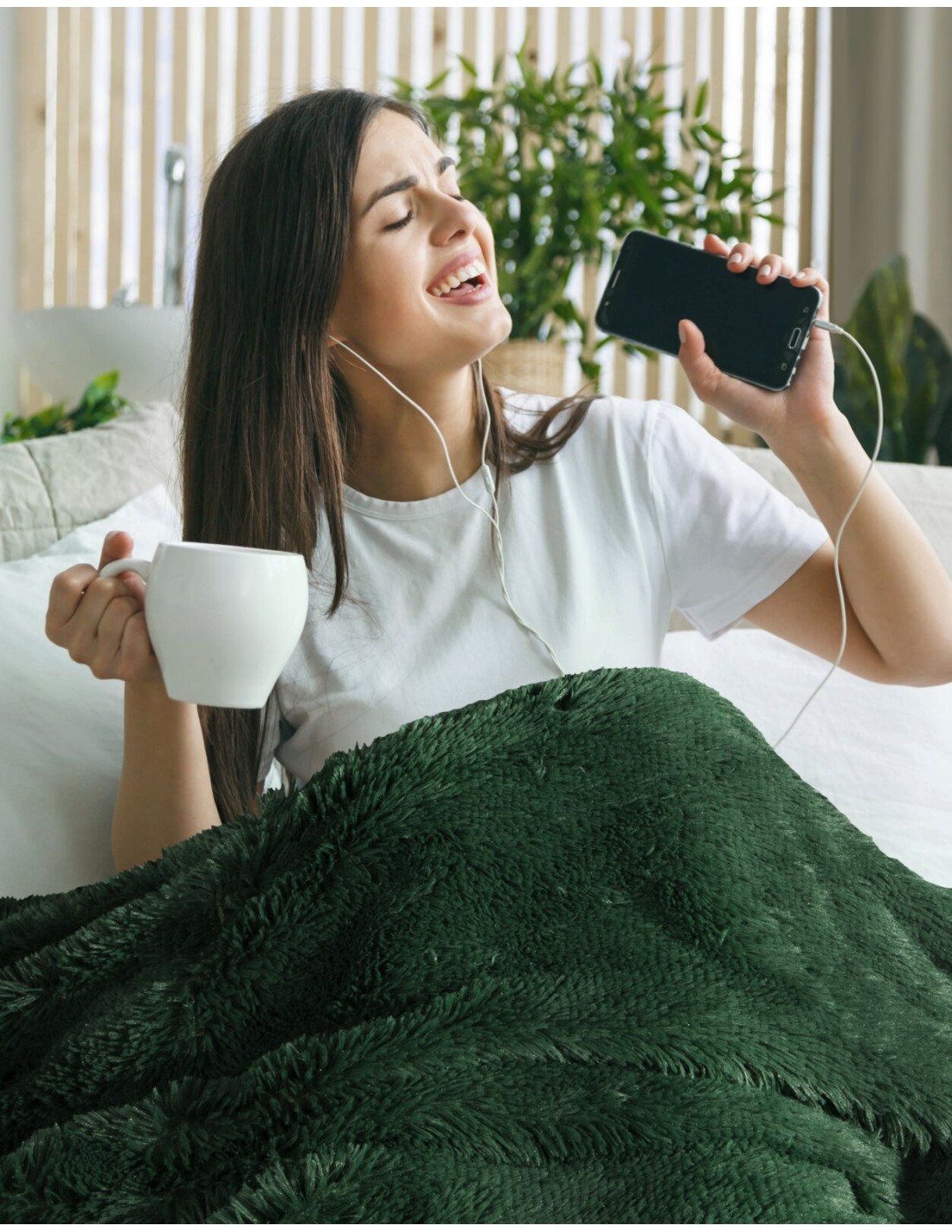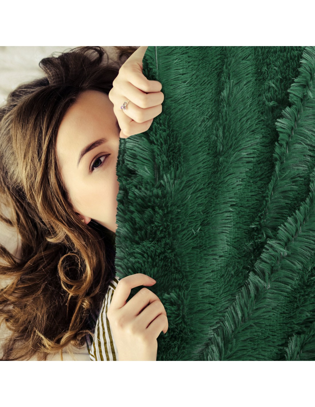 Ciepły i miły w dotyku koc o strukturze futra ze srebrną nicią szerokość: 150 cm, długość: 200 cm, kolor: ciemnozielony, Gramatura: 240 GSM, Skład: 100% poliester