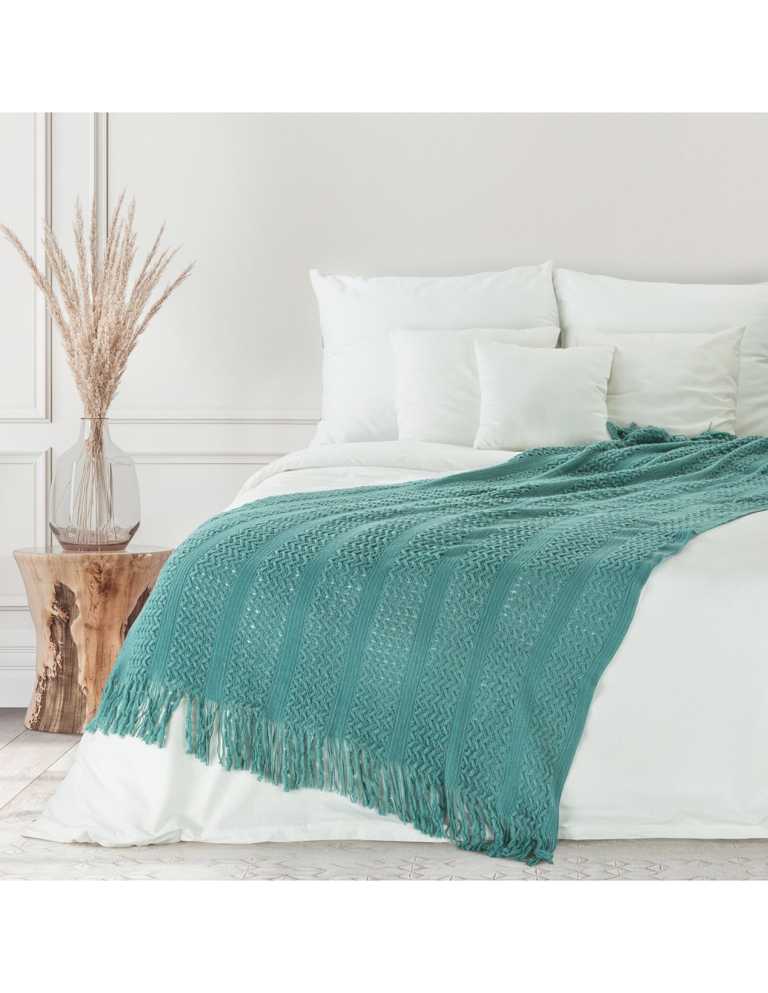 Pleciony koc akrylowy szerokość: 130 cm, długość: 170 cm, kolor: ciemnomiętowy, Gramatura: 215 GSM GSM, Skład: 100% akryl