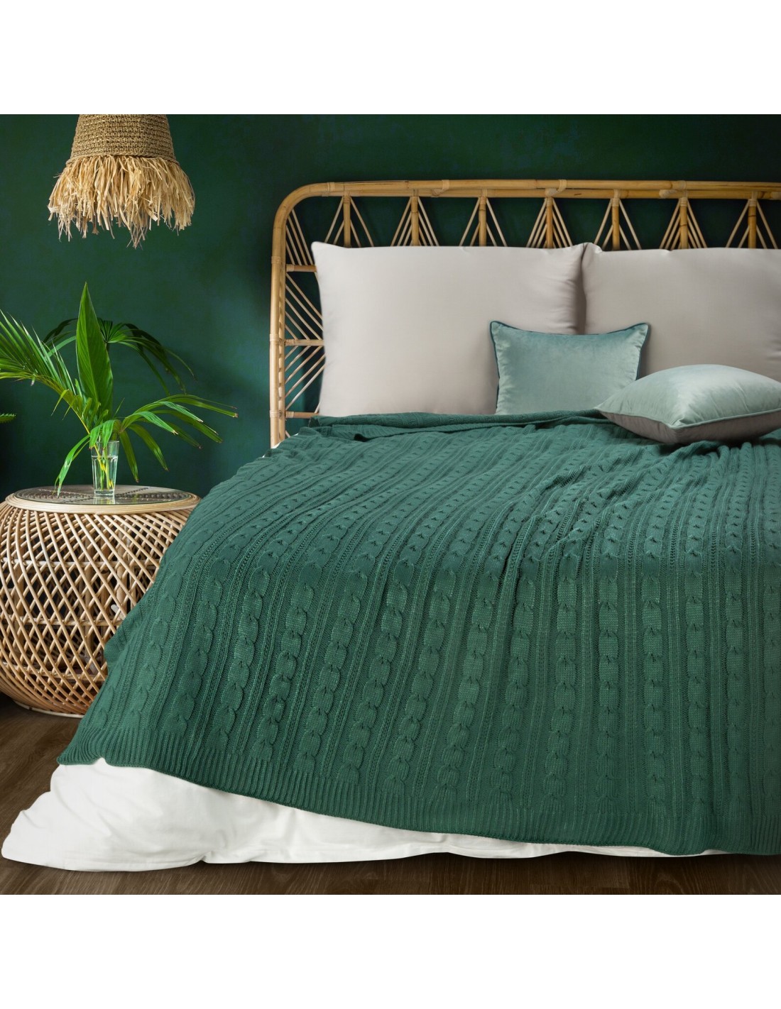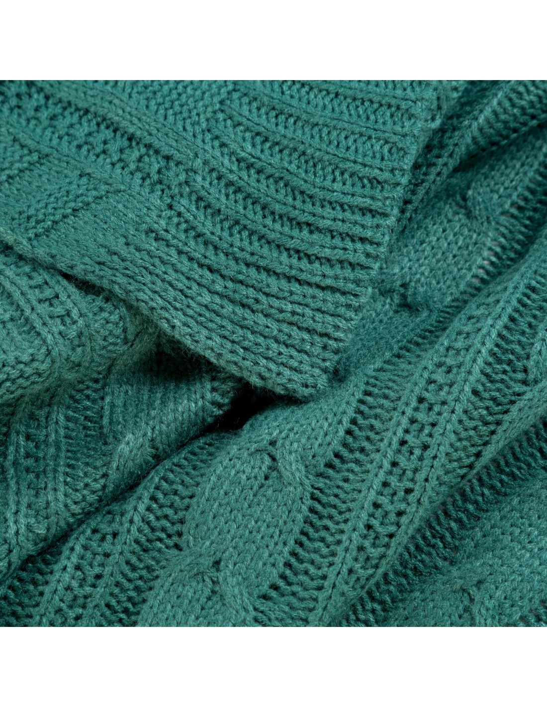 Pleciony koc akrylowy szerokość: 130 cm, długość: 170 cm, kolor: ciemnozielony, Gramatura: 300 GSM, Skład: 100% akryl