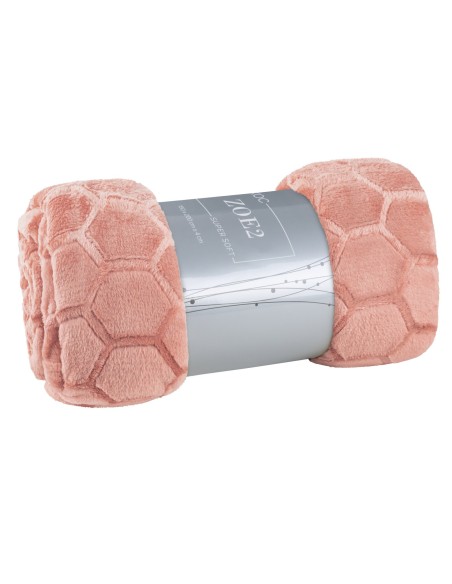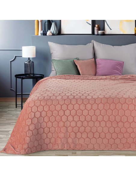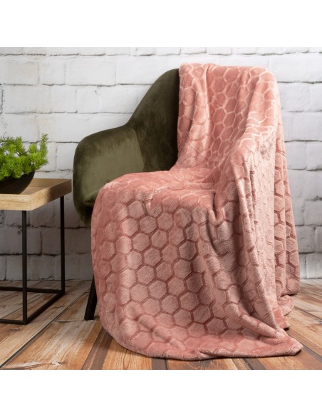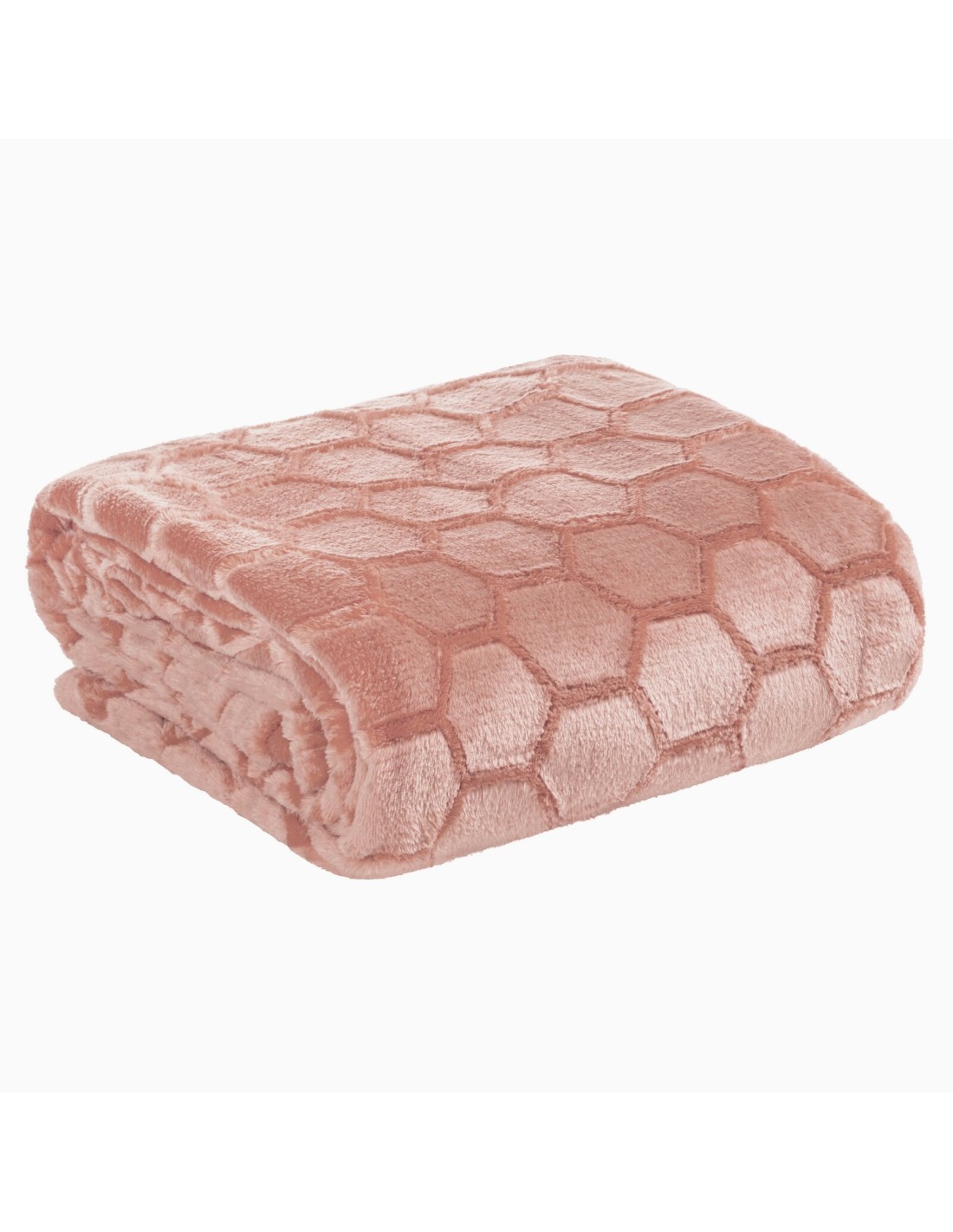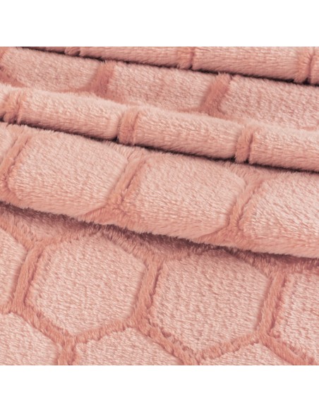Koc flano bardzo miękki w dotyku z efektem 3d szerokość: 150 cm, długość: 200 cm, kolor: pudrowy róż, Gramatura: 250 GSM, Skład: 100% poliester
