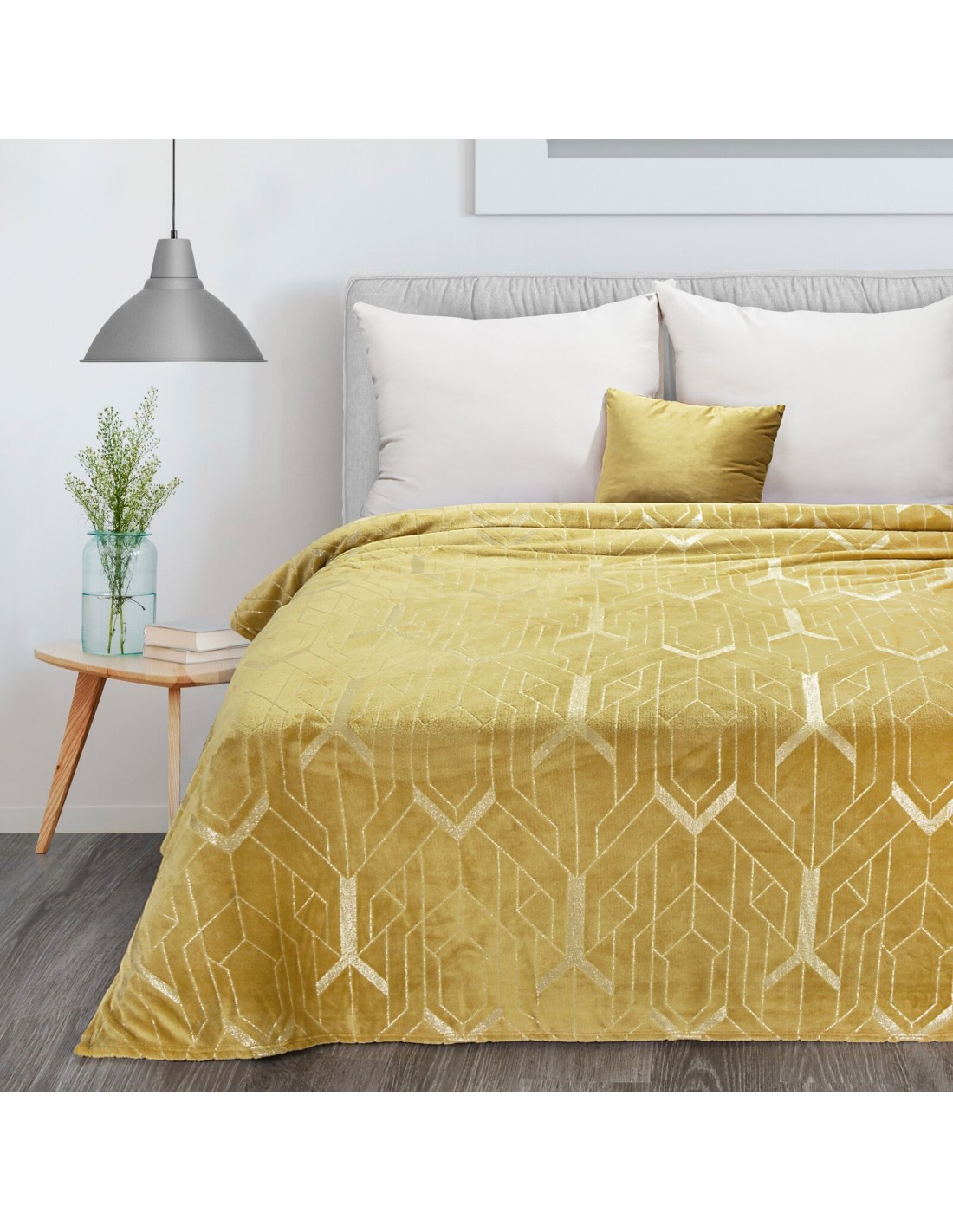 Koc flano bardzo miękki w dotyku z błyszczącym nadrukiem szerokość: 150 cm, długość: 200 cm, kolor: złoty, Gramatura: 250 GSM GSM, Skład: 100% poliester