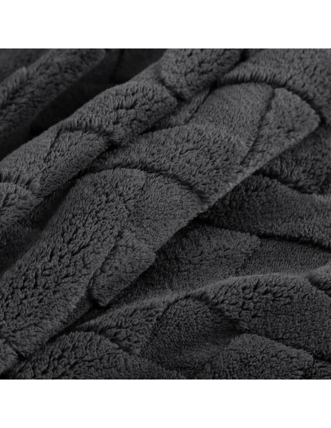 Klasyczny koc z przyjemnego w dotyku włókna w technologii mikroflano. Jednobarwna, puszysta faktura ozdobiona jest minimalistycznym tłoczeniem w formie jodełki. szerokość: 150 cm, długość: 200 cm, kolor: stalowy, Gramatura: 340 GSM, Skład: 100% poliester