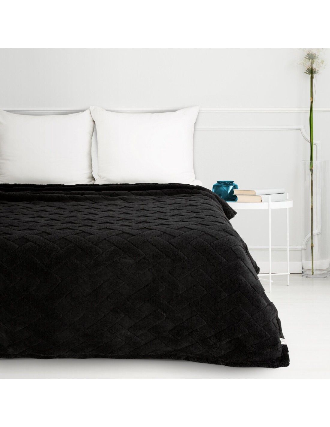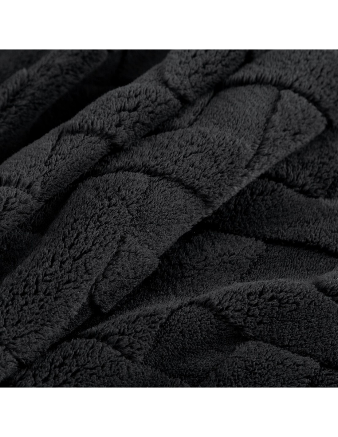 Klasyczny koc z przyjemnego w dotyku włókna w technologii mikroflano. Jednobarwna, puszysta faktura ozdobiona jest minimalistycznym tłoczeniem w formie jodełki. szerokość: 170 cm, długość: 210 cm, kolor: czarny, Gramatura: 340 GSM, Skład: 100% poliester
