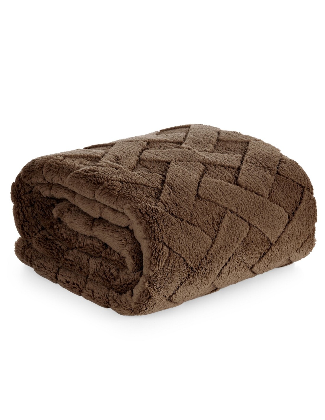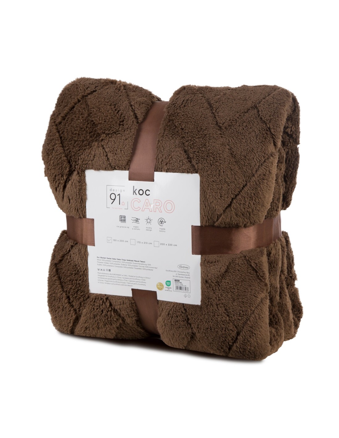 Klasyczny koc z przyjemnego w dotyku włókna w technologii mikroflano. Jednobarwna, puszysta faktura ozdobiona jest minimalistycznym tłoczeniem w formie jodełki. szerokość: 150 cm, długość: 200 cm, kolor: ciemnobrązowy, Gramatura: 340 GSM, Skład: 100% poliester