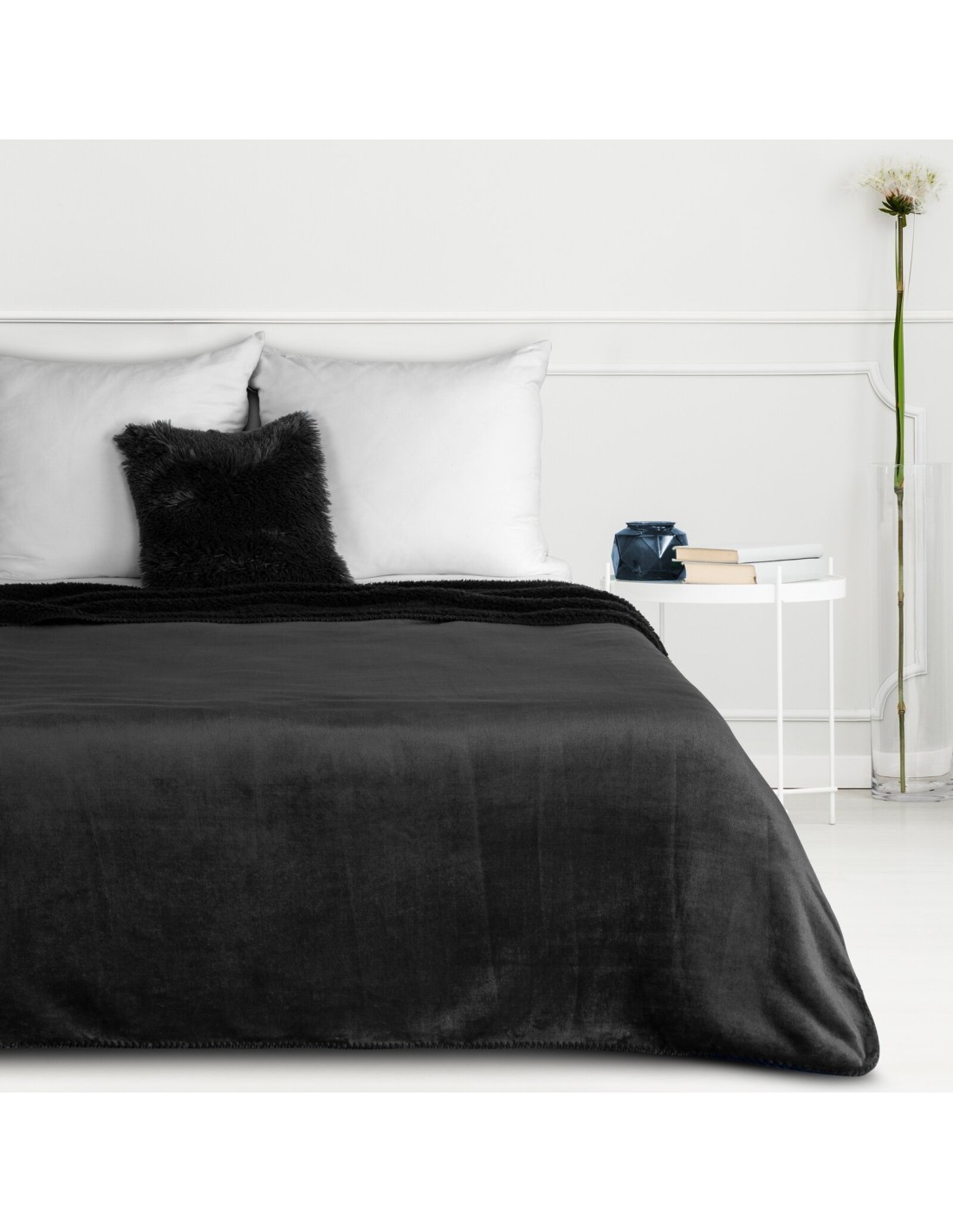 Miekki koc flano dwustronny wykonany z tkaniny barankowej szerokość: 70 cm, długość: 160 cm, kolor: czarny, Gramatura: 170+170 GSM, Skład: 100% poliester