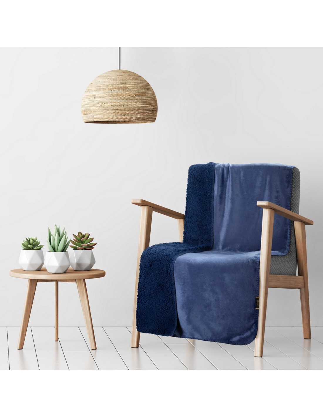 Miekki koc flano dwustronny wykonany z tkaniny barankowej szerokość: 70 cm, długość: 160 cm, kolor: granatowy, Gramatura: 170+170 GSM, Skład: 100% poliester