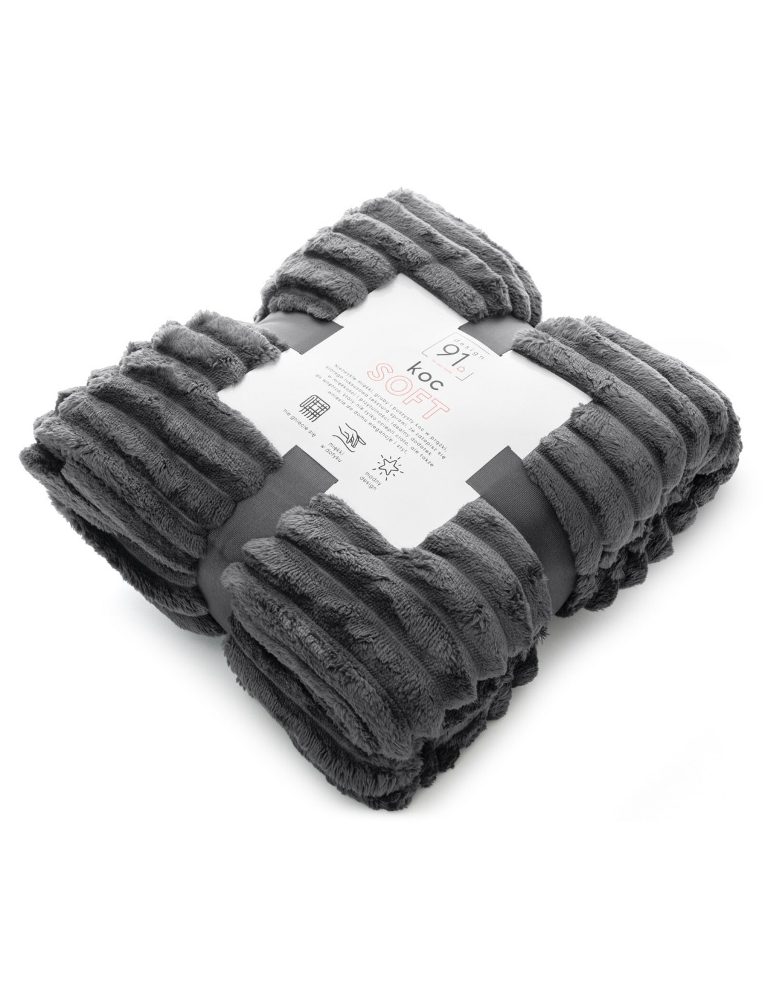 Klasyczny koc z przyjemnego w dotyku włókna w technologii mikroflano. Jednobarwna, puszysta faktura ozdobiona jest minimalistycznym tłoczeniem w formie jodełki. szerokość: 170 cm, długość: 210 cm, kolor: stalowy, Gramatura: 300 GSM, Skład: 100% poliester