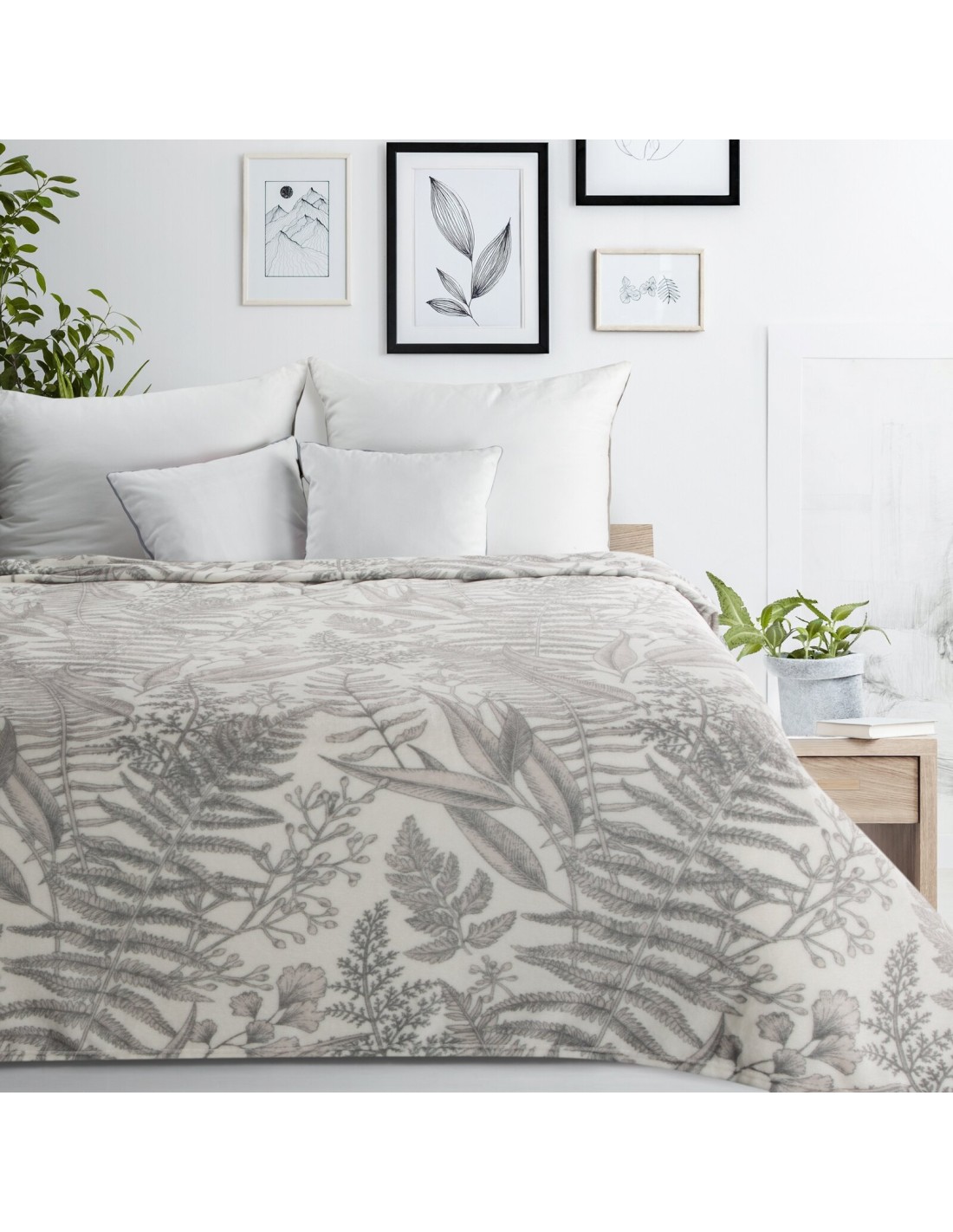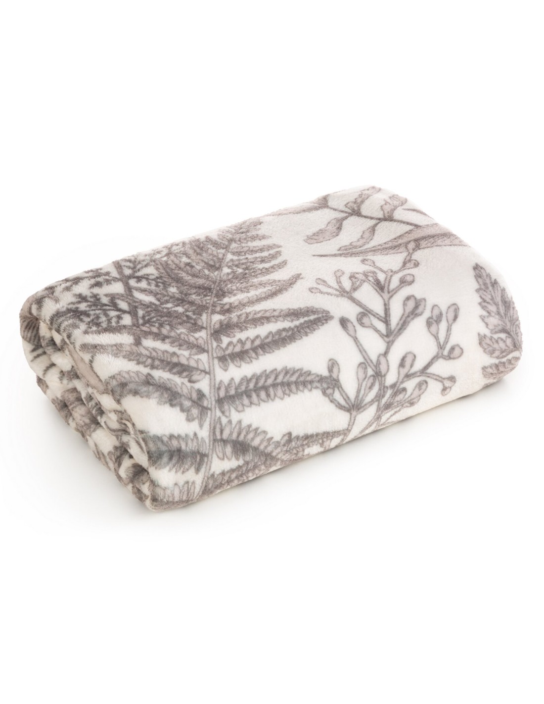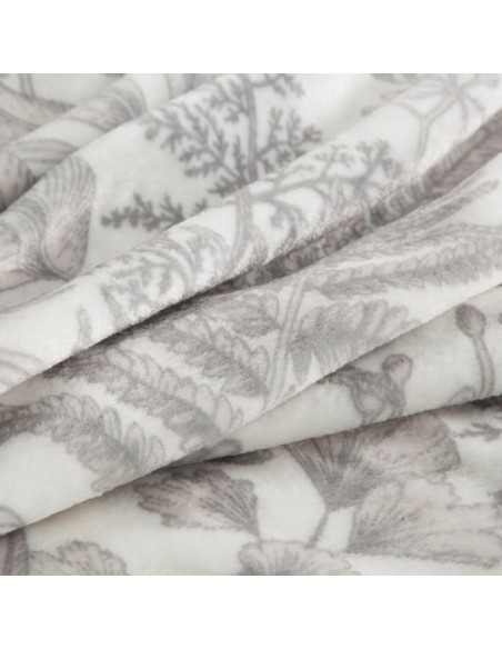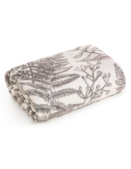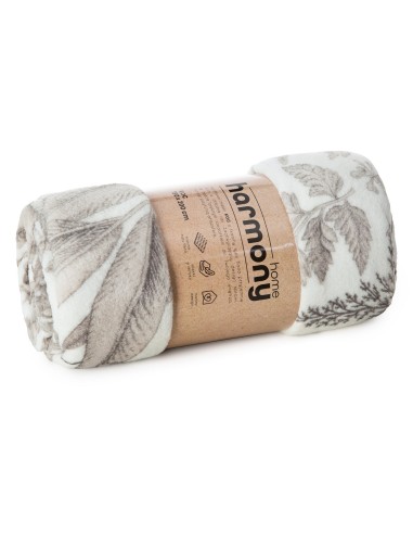 Koc typu flano z nadrukowanym motywem liści szerokość: 150 cm, długość: 200 cm, kolor: kremowy, Gramatura: 210 GSM, Skład: 100% poliester