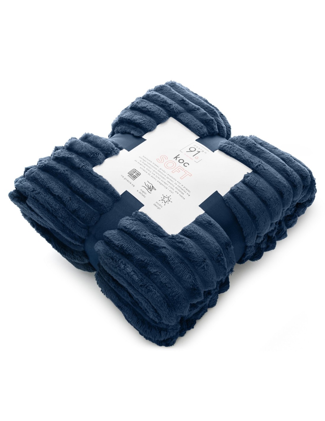 Klasyczny koc z przyjemnego w dotyku włókna w technologii mikroflano. Jednobarwna, puszysta faktura ozdobiona jest minimalistycznym tłoczeniem w formie jodełki. szerokość: 150 cm, długość: 200 cm, kolor: granatowy, Gramatura: 300 GSM, Skład: 100% poliester