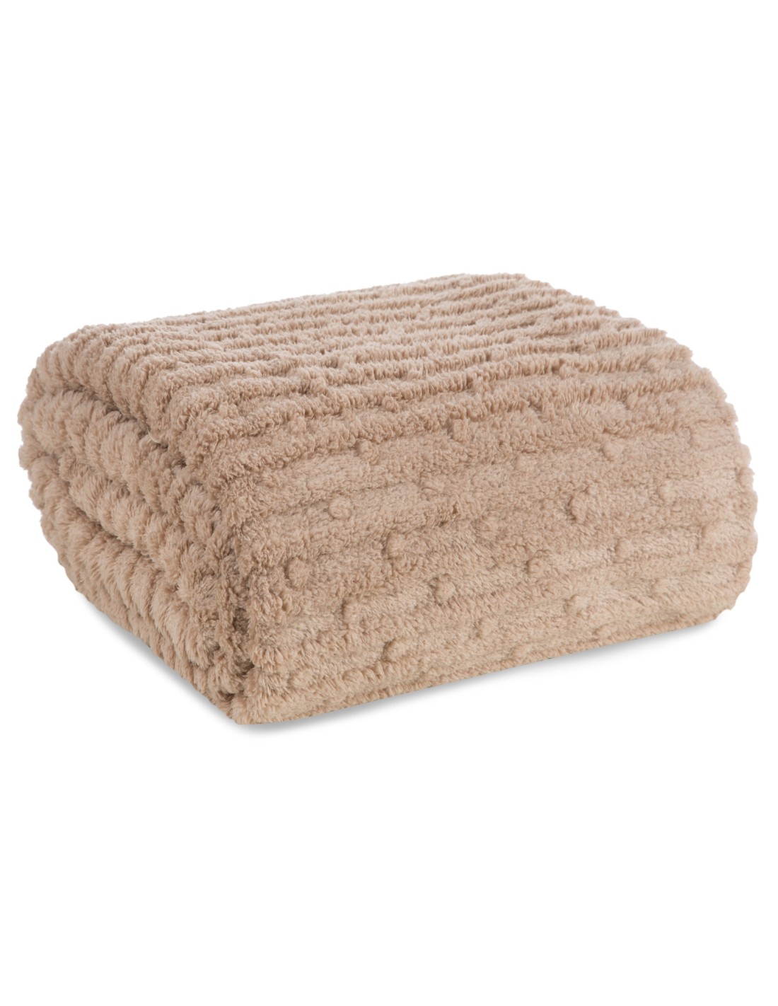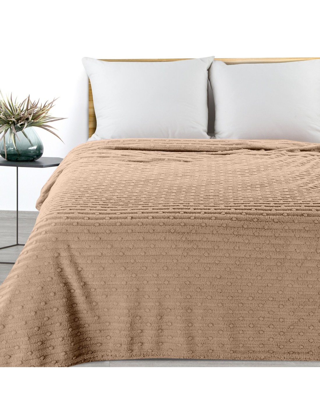 Miękki w dotyku jednokolorowy koc żakardowy szerokość: 150 cm, długość: 200 cm, kolor: beżowy, Gramatura: 240 GSM, Skład: 100% poliester