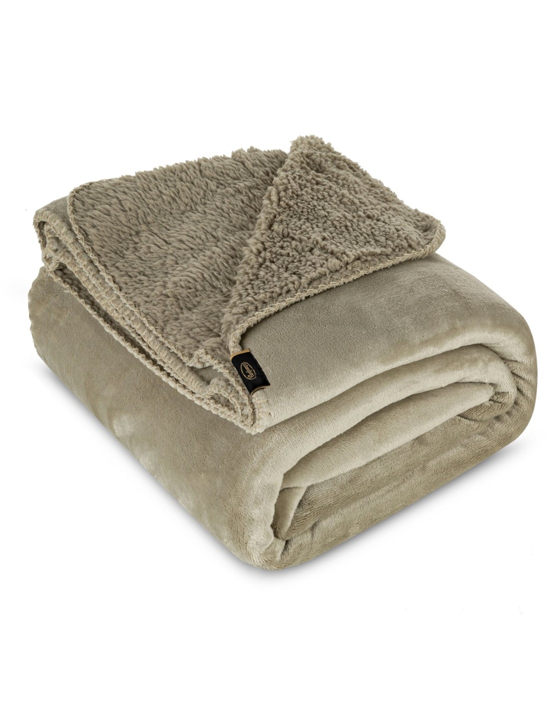 Miekki koc flano dwustronny wykonany z tkaniny barankowej szerokość: 70 cm, długość: 160 cm, kolor: beżowy, Gramatura: 170+170 GSM, Skład: 100% poliester