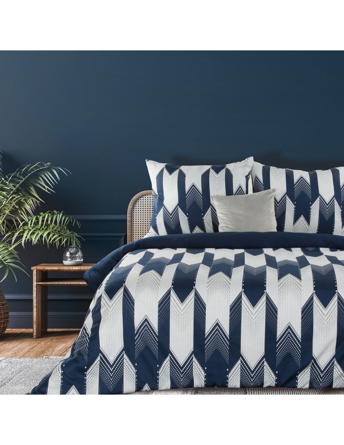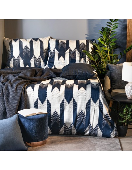 Komplet pościeli z makosatyny bawełnianej z geometrycznym nadrukiem szerokość: 160 cm, długość: 200 cm, kolor: biały, Gramatura: 120 GSM, Skład: makosatyna, 100% bawełna