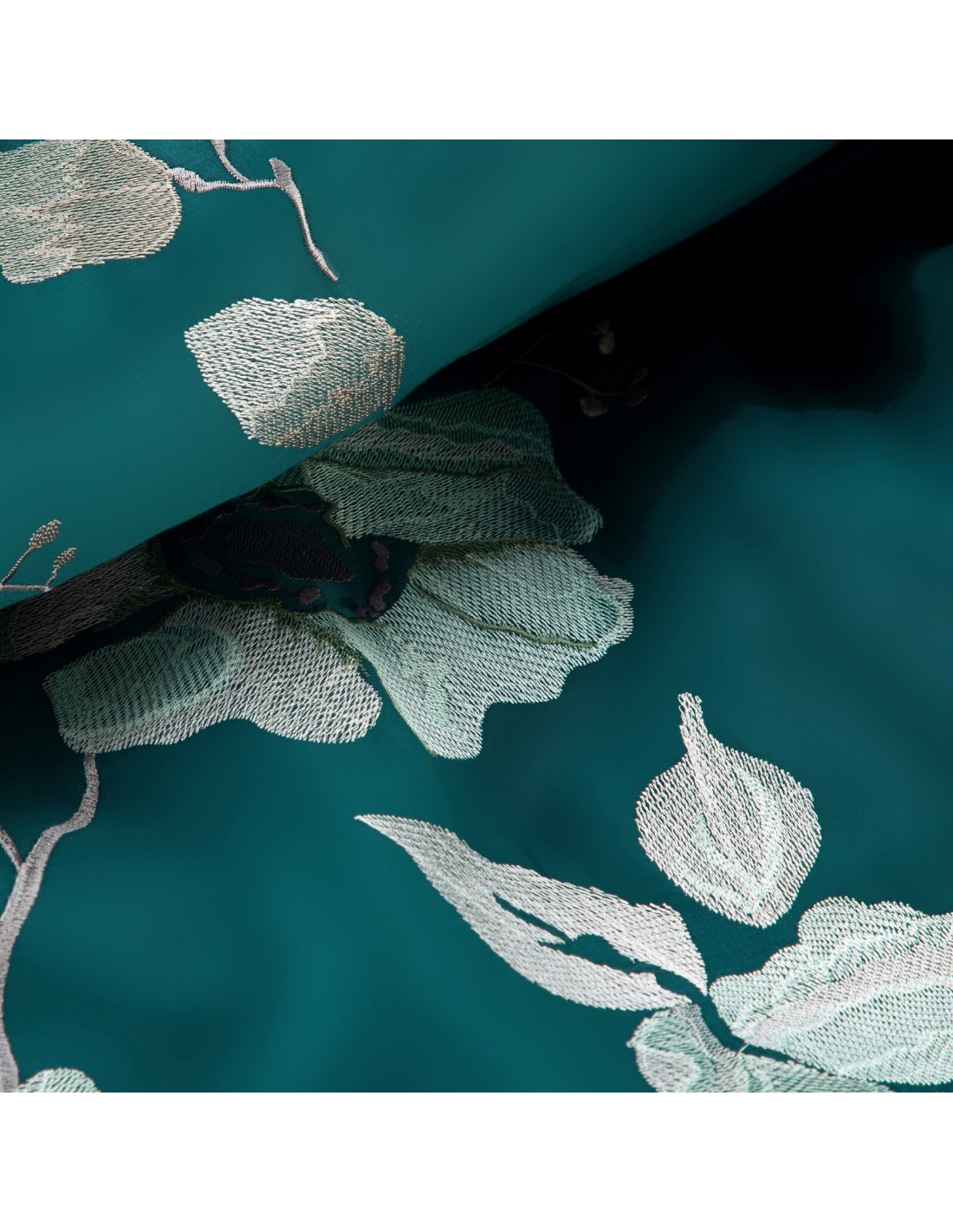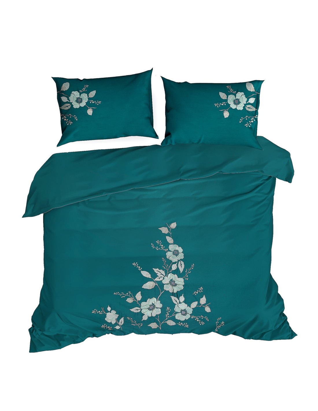 Zestaw wysokiej jakości pościeli bawełnianej zdobionej pastelowym haftem z pastelowym motywem kwiatowym. Elegancka pościel zapinana na zamek błyskawiczny. szerokość: 160 cm, długość: 200 cm, kolor: turkusowy, Gramatura: 125 GSM, Skład: satyna, 100% bawełna
