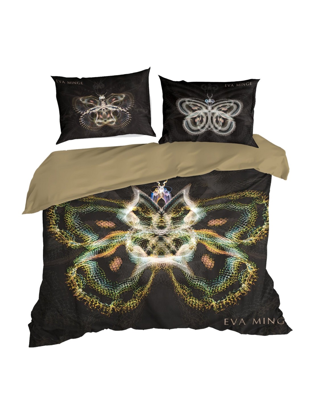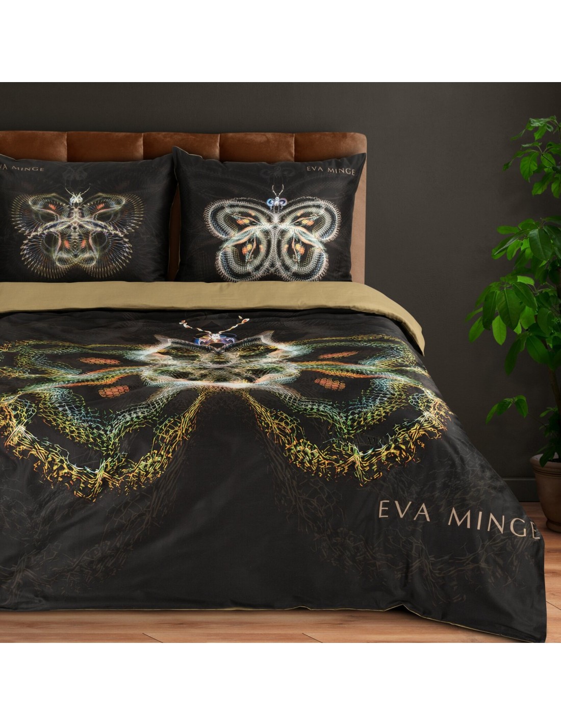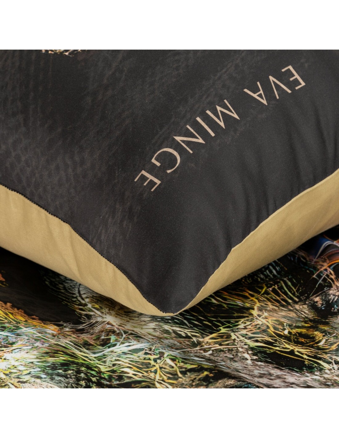 Komplet ekskluzywnej, designerskiej pościeli z satyny bawełnianej z kolekcji polecanej przez Eva Minge. Zapinana na zamek błyskawiczny. Precyzyjne wykonanie. szerokość: 160 cm, długość: 200 cm, kolor: czarny, Gramatura: 125 GSM, Skład: makosatyna, 100% bawełna