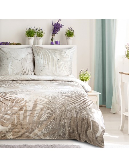 Pościel z makosatyny bawełnianej z nadrukiem panelowym szerokość: 160 cm, długość: 200 cm, kolor: beżowy, Gramatura: 140 GSM, Skład: makosatyna, 100% bawełna