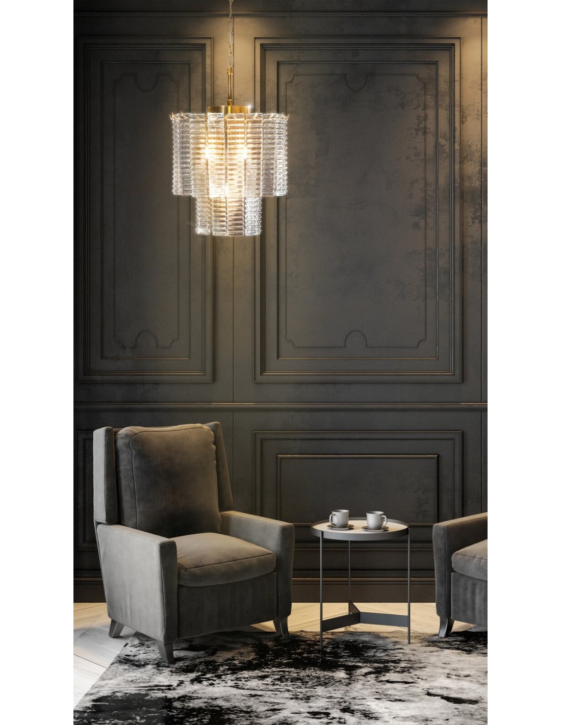 Lampa dekoracyjna, wisząca szerokość: fi 42 cm, długość: 50 cm, kolor: złoty, Skład: żelazo, szkło , Zasilanie: CE 220-240V , Żarowka: 7 X E14 60W , Klasa energetyczna: A-G