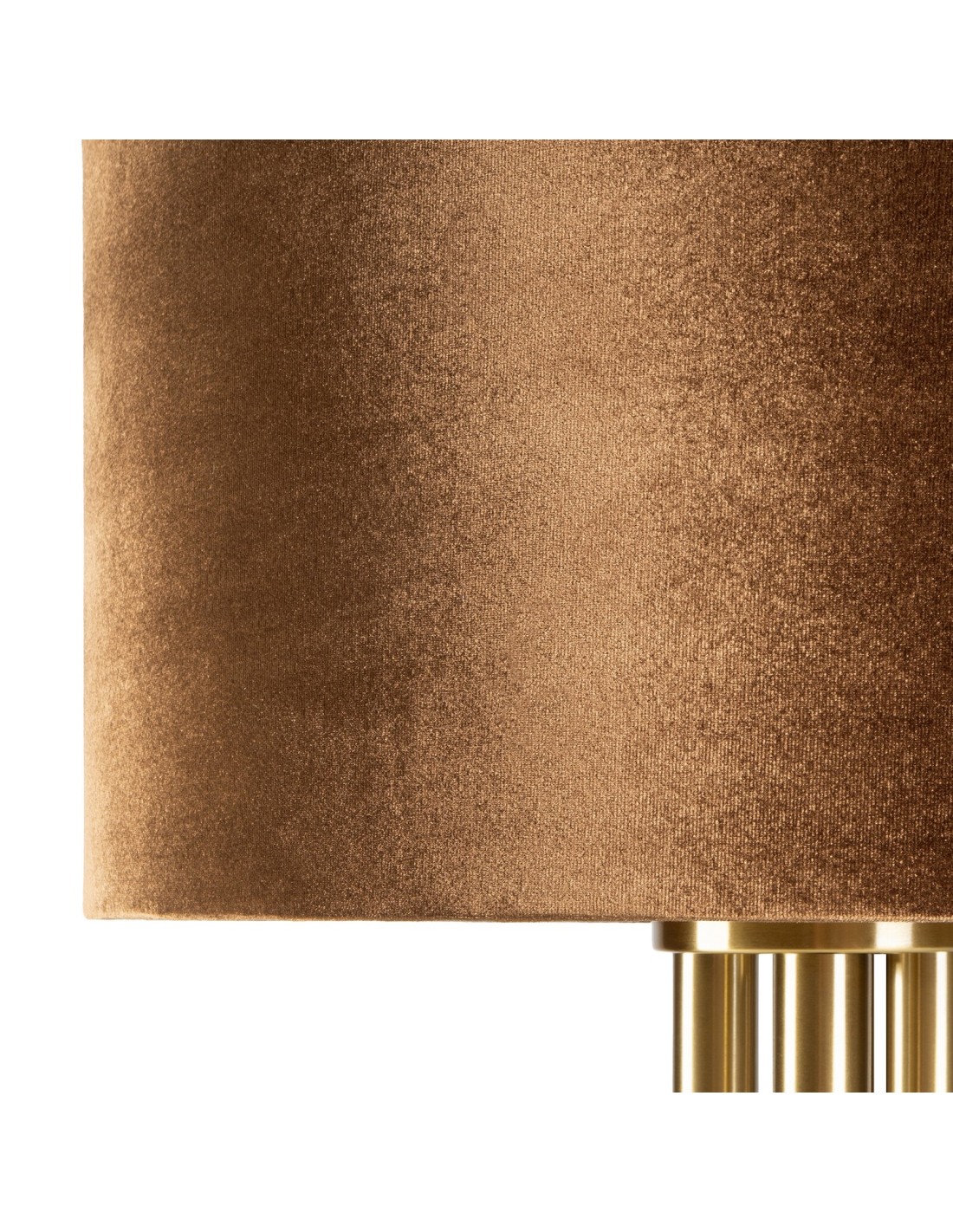 Lampa dekoracyjna, stojąca szerokość: O 46 cm, długość: 156 cm, kolor: brązowy, Skład: lampa: metal; abażur: poliester , Zasilanie: CE 220-240V , Żarowka: 1 X E27 MAX 100W , Klasa energetyczna: A-G