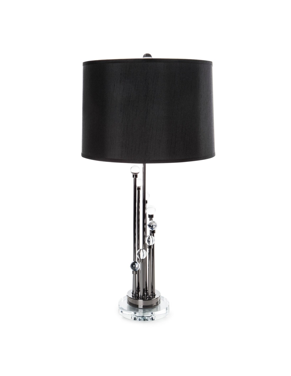 Lampa dekoracyjna, stołowa szerokość: O 38 cm, długość: 75 cm, kolor: czarny, Skład: lampa: metal; abażur: poliester , Zasilanie: CE 220-240V , Żarowka: 1 X E27 MAX 60W , Klasa energetyczna: A-G