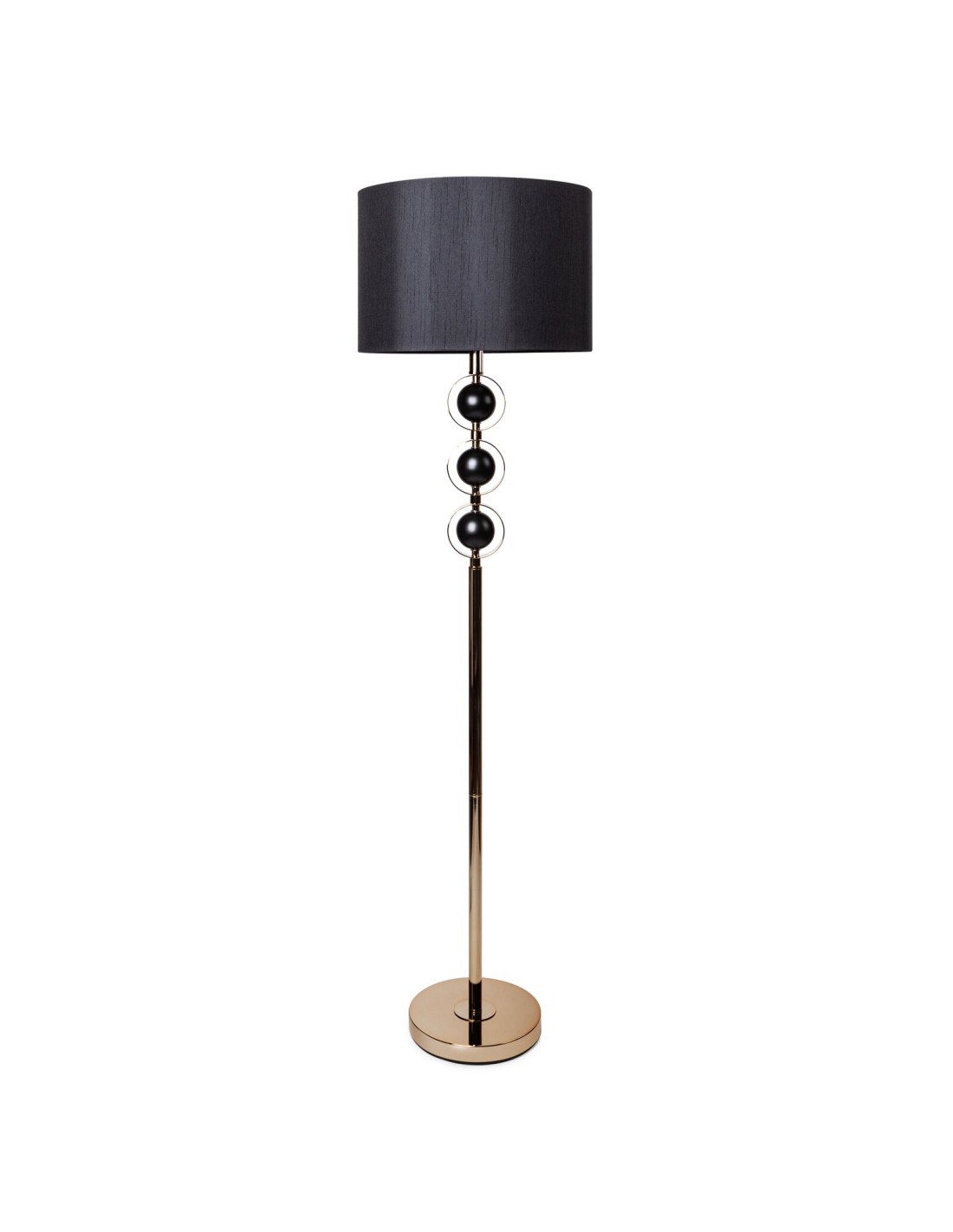 Lampa dekoracyjna, stojąca szerokość: O 41 cm, długość: 153 cm, kolor: czarny, Skład: lampa: metal; abażur: poliester , Zasilanie: CE 220-240V , Żarowka: 1 X E27 MAX 100W , Klasa energetyczna: A-G