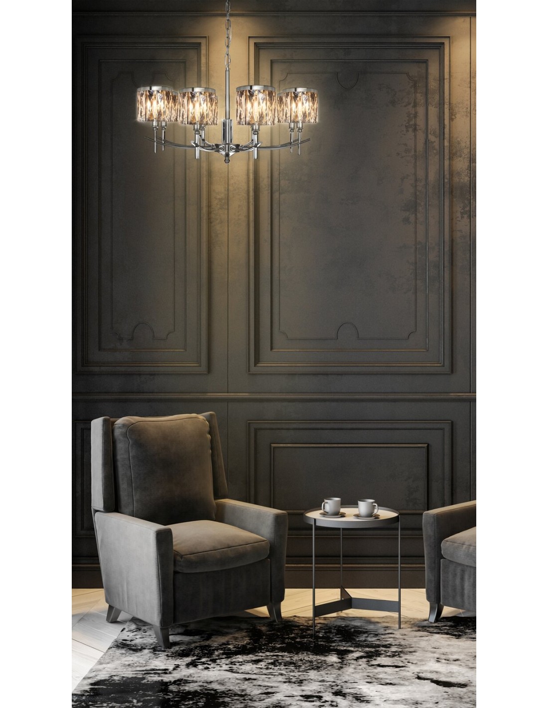 Lampa dekoracyjna, wisząca szerokość: O 60 cm, długość: 150 cm, kolor: transparentny, Skład: kryształ k9, metal , Zasilanie: CE 220-240V , Żarowka: 6 X E14 MAX 40W , Klasa energetyczna: A-G