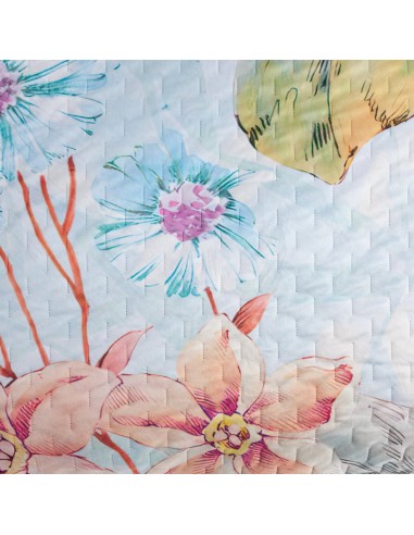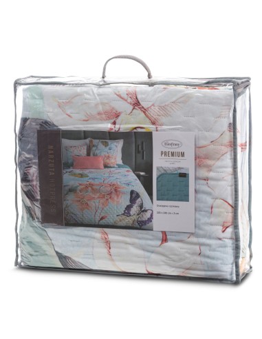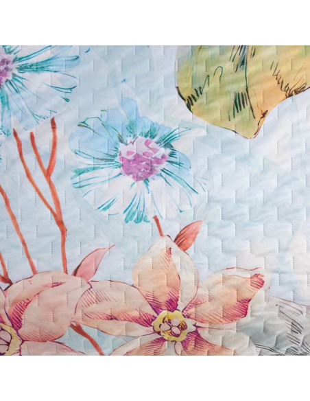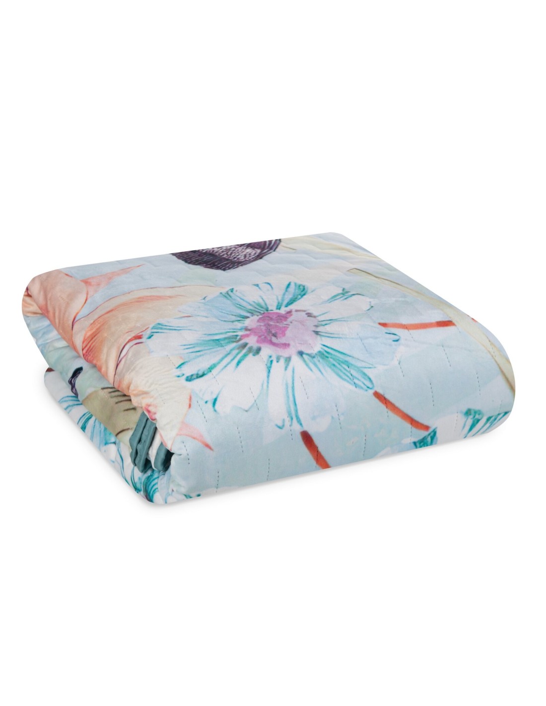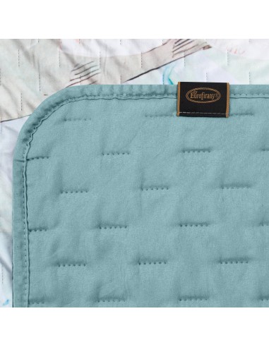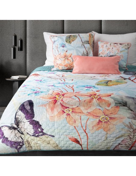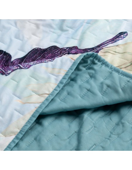 Narzuta welwetowa z nadrukiem, wykonana techniką "hot press" szerokość: 220 cm, długość: 240 cm, kolor: jasnoturkusowy, Gramatura: 250 GSM, Skład: 100% poliester