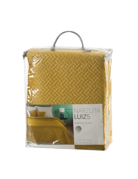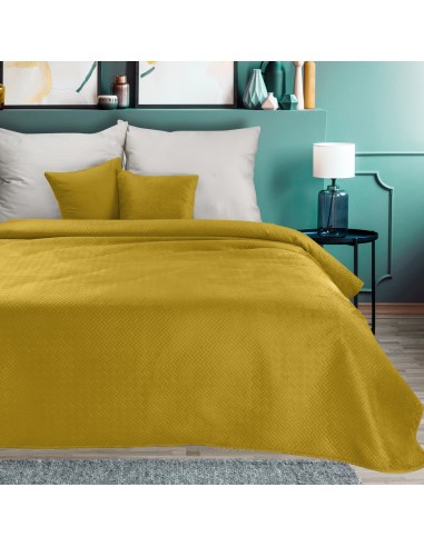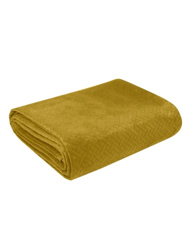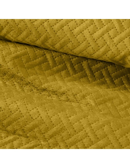 Narzuta welurowa,wykonana metodą hot press szerokość: 170 cm, długość: 210 cm, kolor: musztardowy, Gramatura: 150+100+65 GSM, Skład: 100% poliester