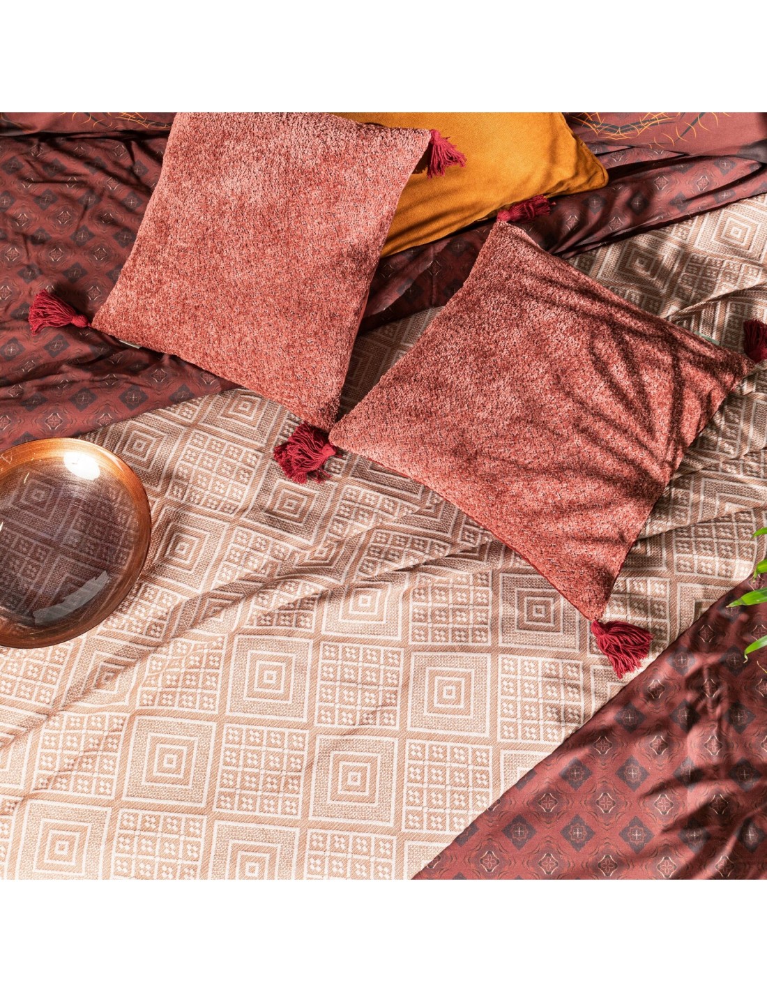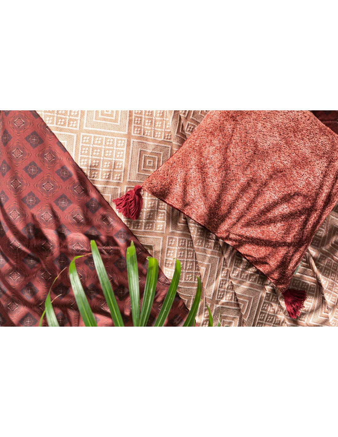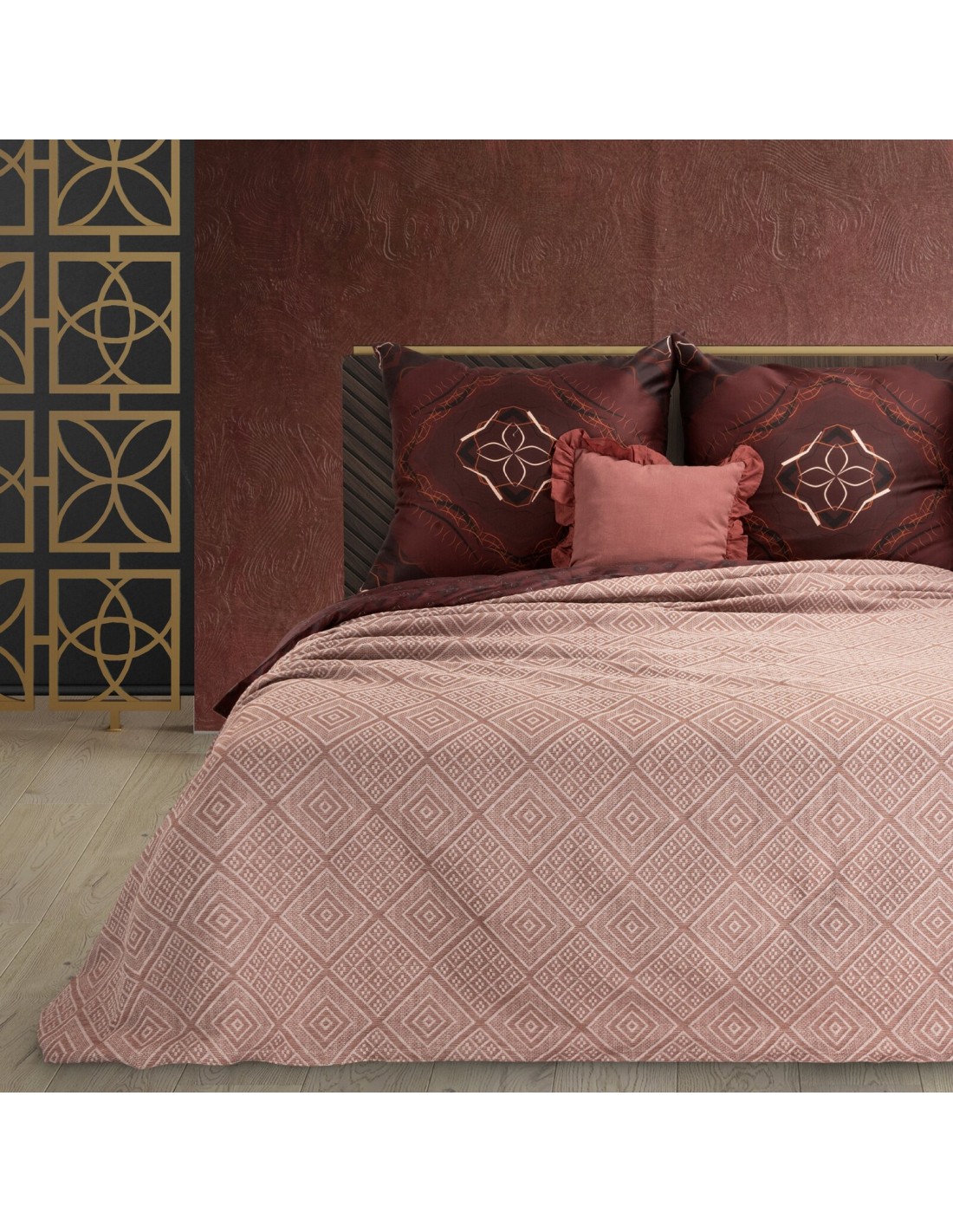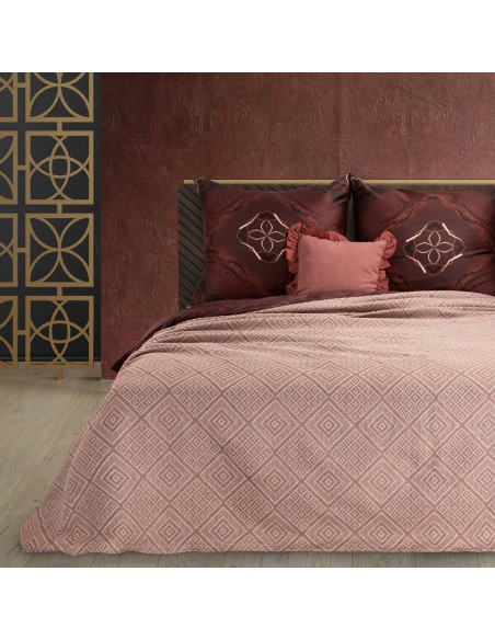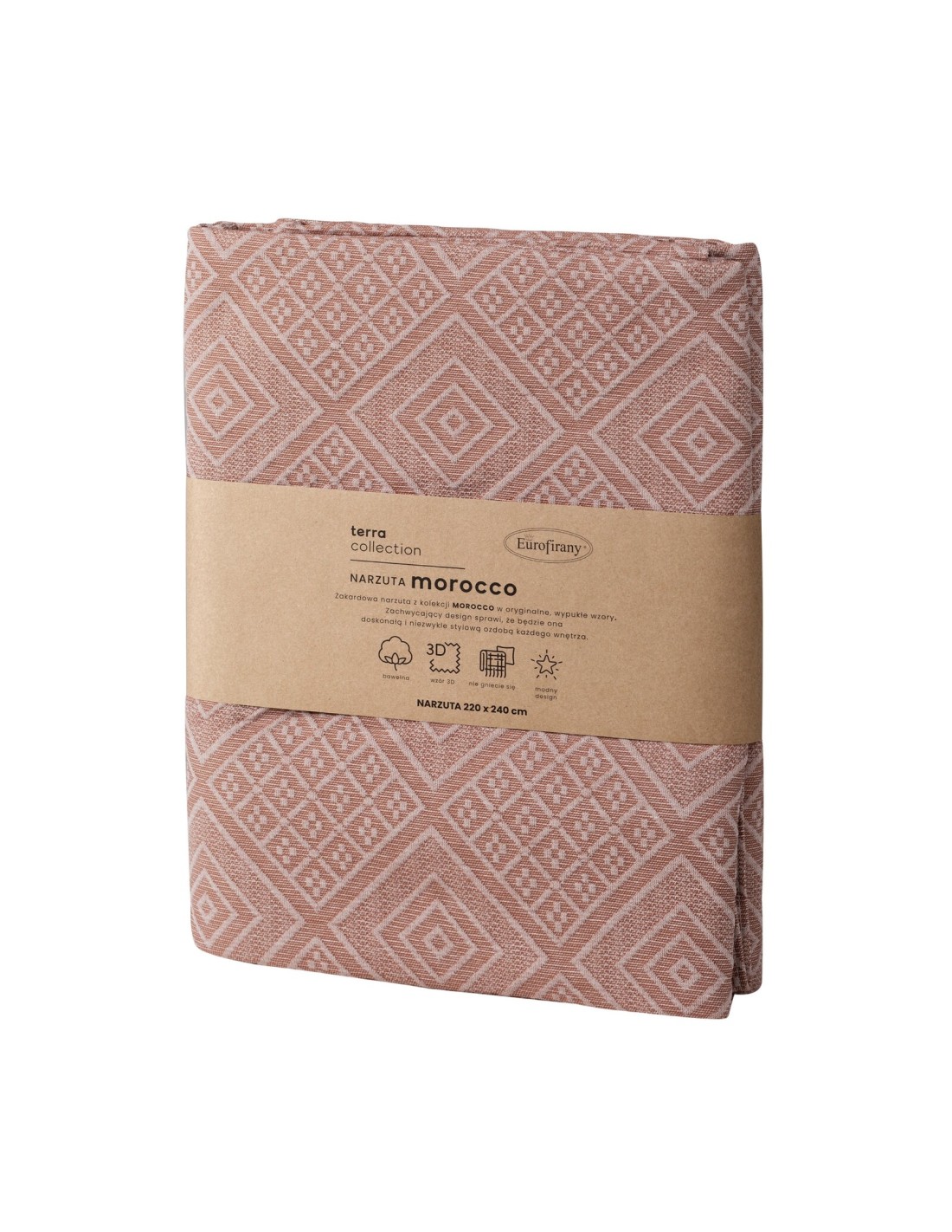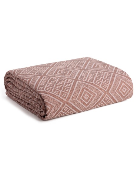 Narzuta bawełniana z żakardowym wzorem szerokość: 220 cm, długość: 240 cm, kolor: ceglasty, Gramatura: 360 GSM, Skład: 20% poliester, 80% bawełna