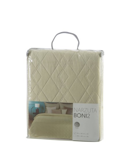 Narzuta jednokolorowa, wykonana techniką hot press szerokość: 200 cm, długość: 220 cm, kolor: beżowy, Gramatura: 70 GSM, Skład: 100% poliester