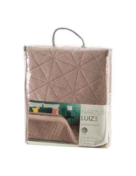 Narzuta welurowa,wykonana metodą hot press szerokość: 170 cm, długość: 210 cm, kolor: różowy, Gramatura: 150+65+100 GSM, Skład: 100% poliester