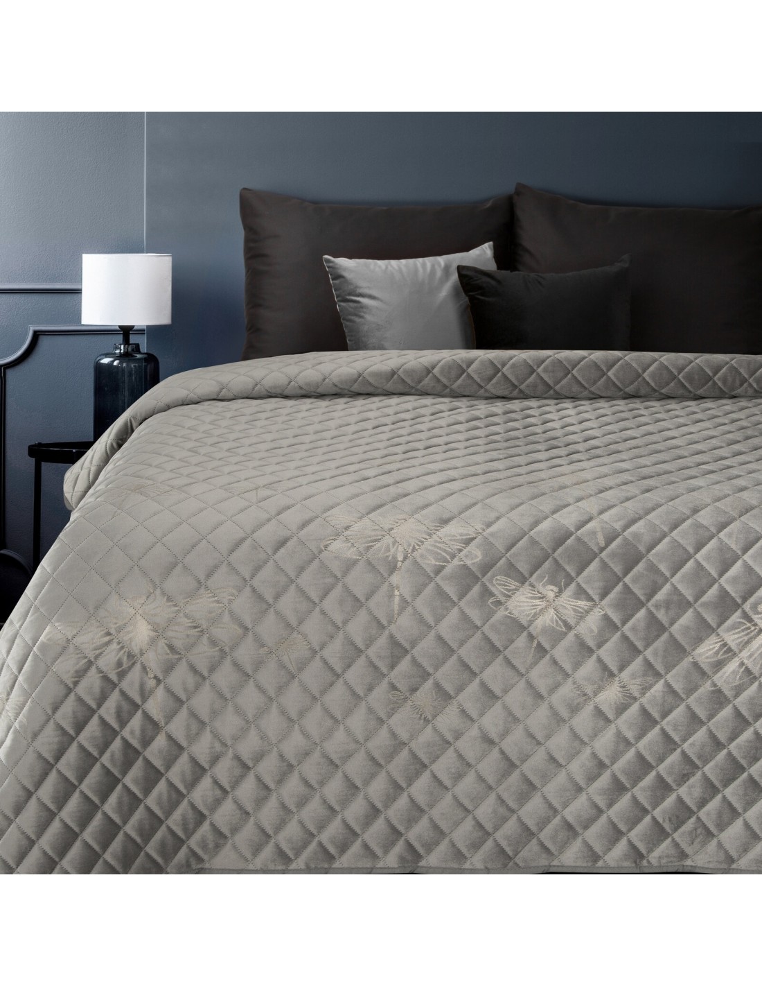 Narzuta welwetowa, wykonana techniką "hot press"z foliowym nadrukiem szerokość: 170 cm, długość: 210 cm, kolor: srebrny, Gramatura: 210+120+70 GSM, Skład: 100% poliester